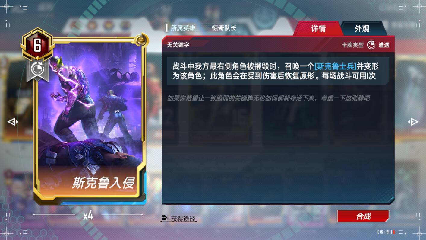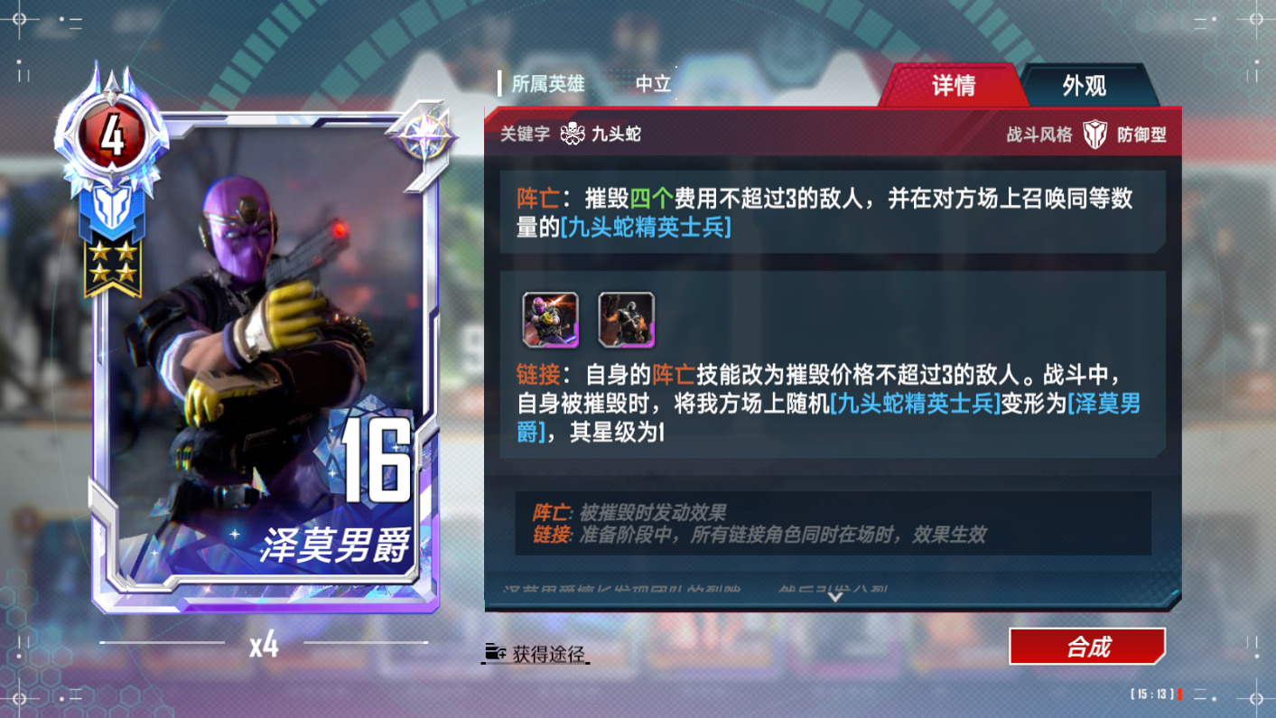 2、战斗中自身摧毁后,可以在九头蛇士兵身上重生为1星,这个效果没什么用,可以略过不表。