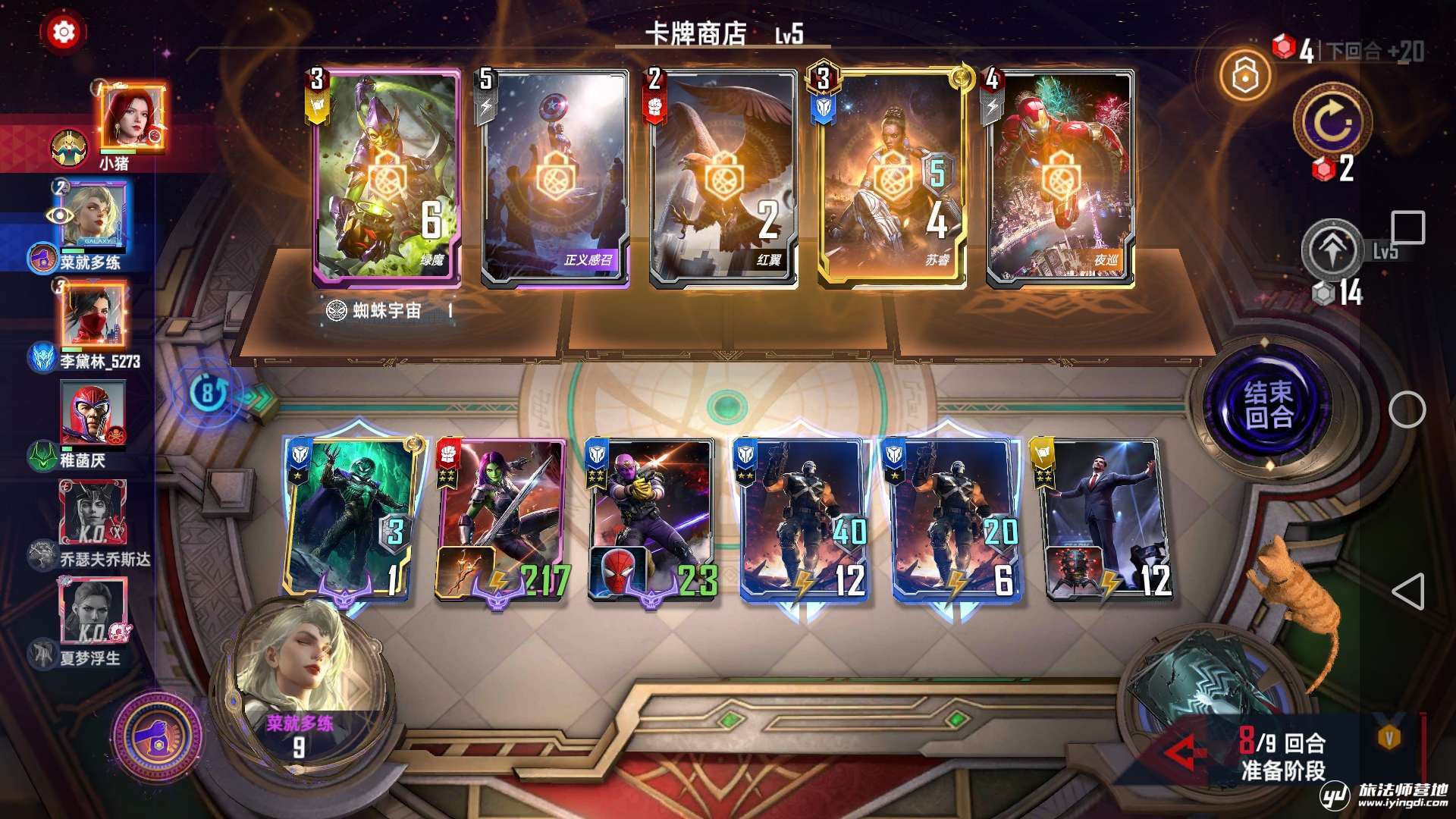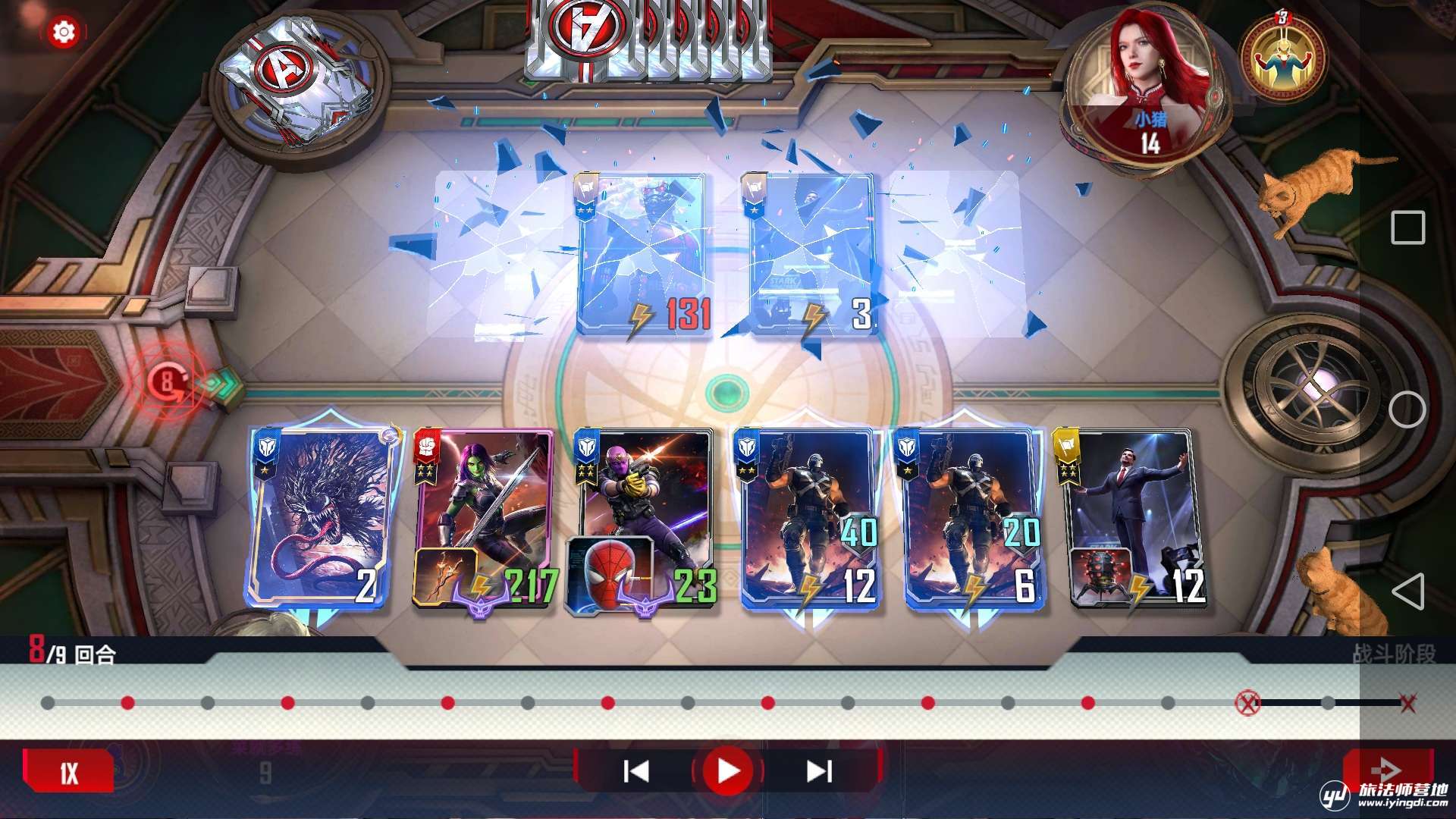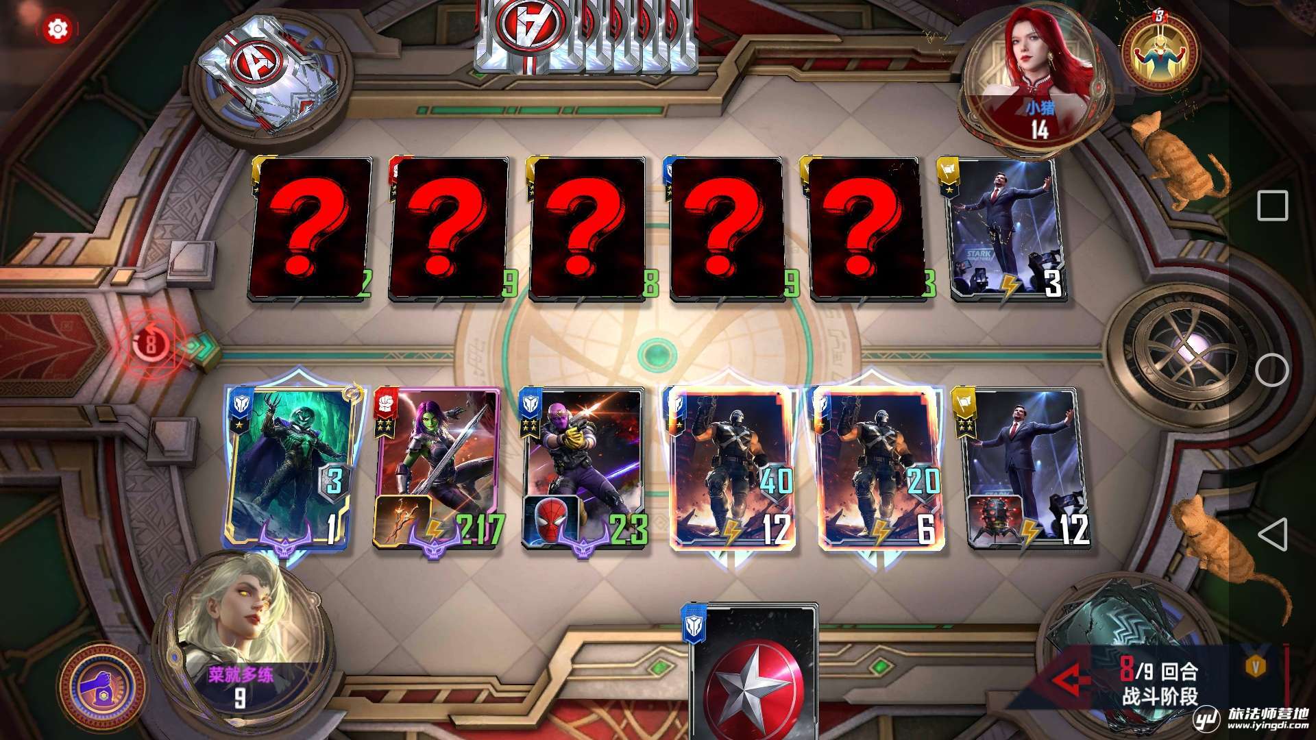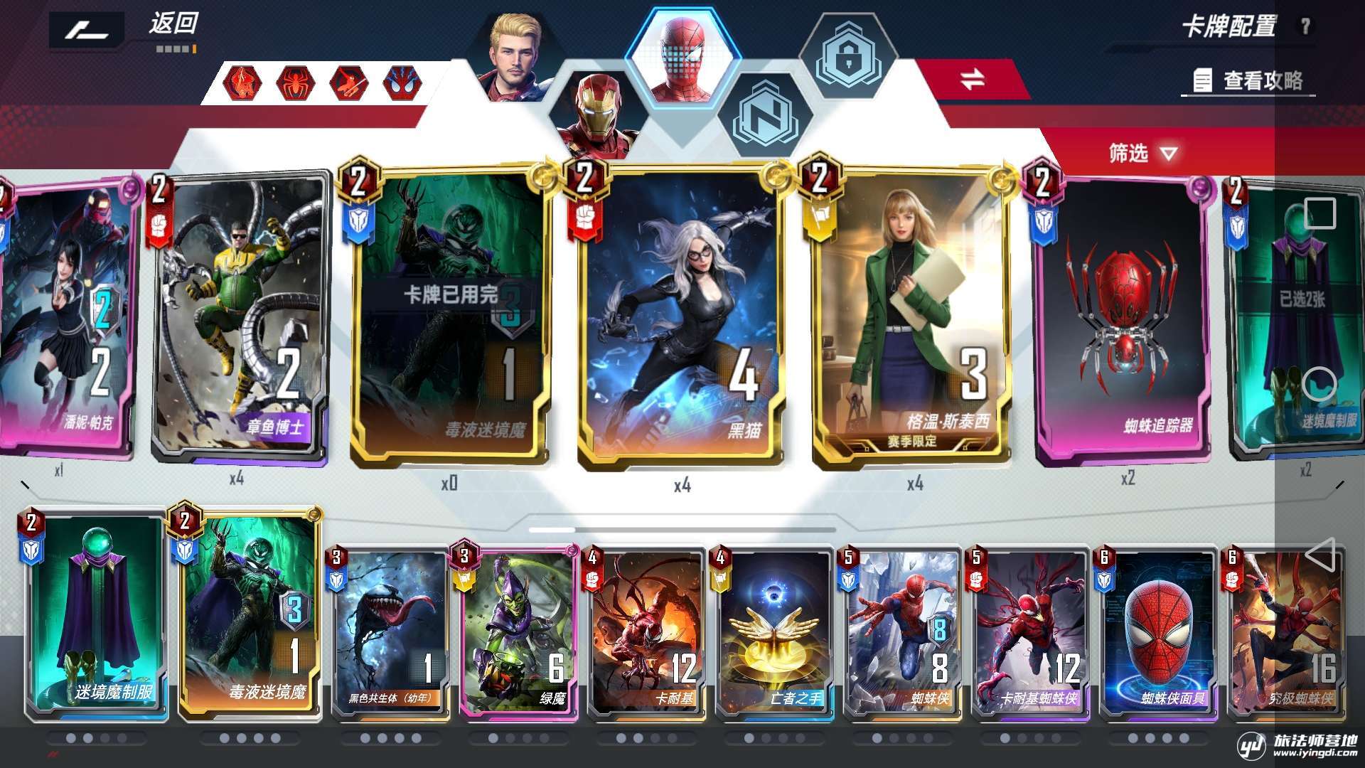 6费:蜘蛛侠面具非常重要,买到蜘蛛侠面具之后,给泽莫装上,我方蜘蛛宇宙的角色,阵亡之后可以触发携带者的阵亡技能,配合泽莫,可以先清除4个敌人,再让卡魔拉多动,摧毁召唤的九头蛇士兵,这样泽莫再撞到大身材上,可以二次摧毁,非常有用