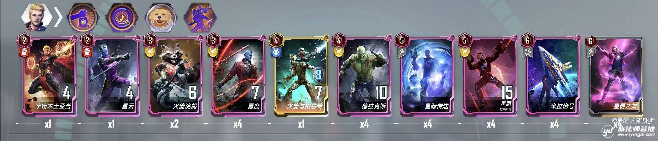 5费扭曲到低费的盾给泽莫,武器给星爵(决赛前换滑翔翼)