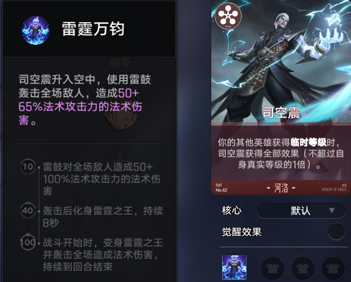 司空震是这套玩法绝对的核心,等级提升到百级后,技能会在战斗开始时触发变身雷霆之王,轰击全场造成法术伤害,不仅特效帅,战力也非常的强,装备优先给司空震,努力提升他的基础等级,战斗时加上临时等级,上场就有999的等级了。