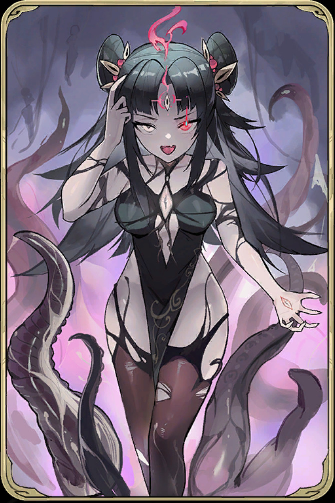 再比如祸太岁,这个随从的设定非常有创意。她初始无法普攻,定位却是普攻+追伤+汲取,核心玩法是“借力打力”,借助队友的普攻发挥作用。她的天赋是任意单位普攻后,召唤触手对目标造成1*攻击力点卡牌伤害,这个天赋让她成为了多动流的绝佳搭档——只要队友高频普攻,就能不断触发触手追伤。
