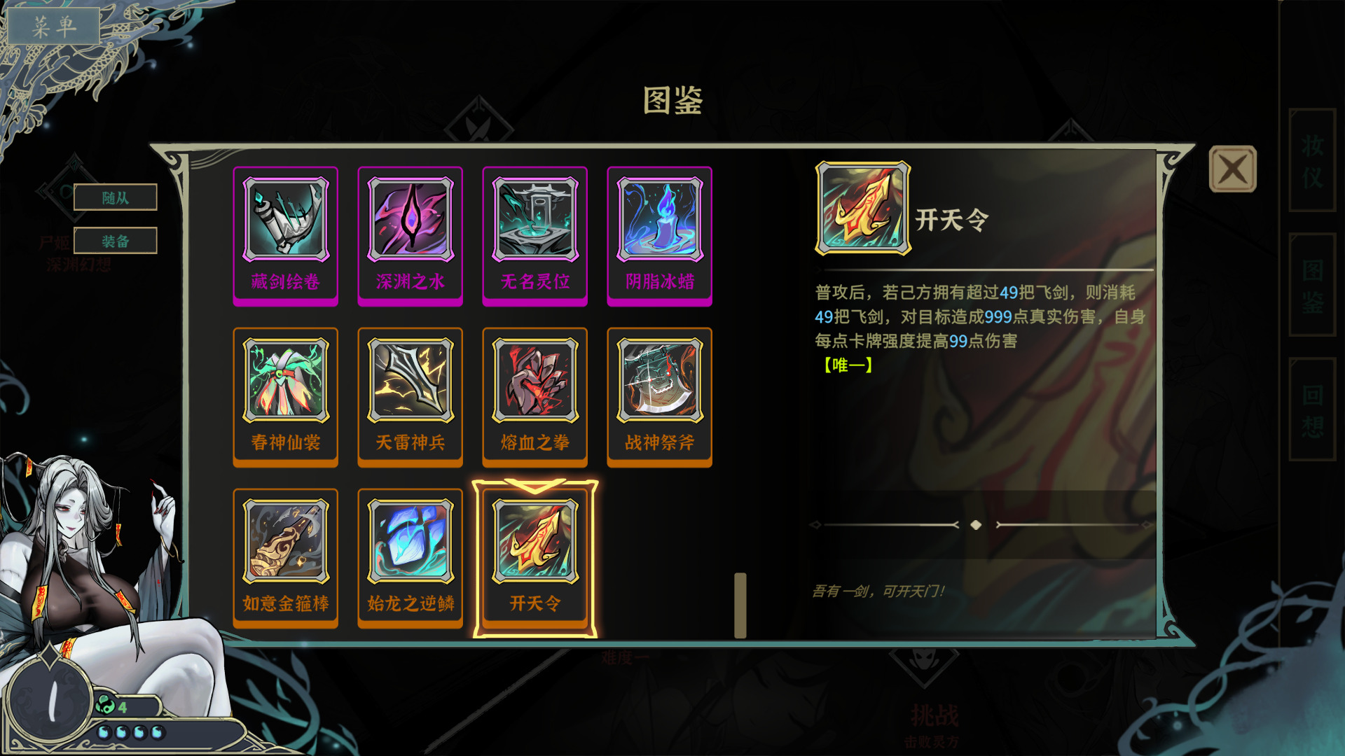 游戏里共有28位能力特异的随从,从醉酒龙娘、卑微剑灵到涩图画手、亡国公主,每一位都有独特的设定和技能,再搭配上分级明确、特效多样的装备,构筑出了极高的自由度。作为资深卡牌玩家,我最欣赏的就是这款游戏对随从定位的区分——没有绝对强势的随从,只有适配不同构筑的最优解。