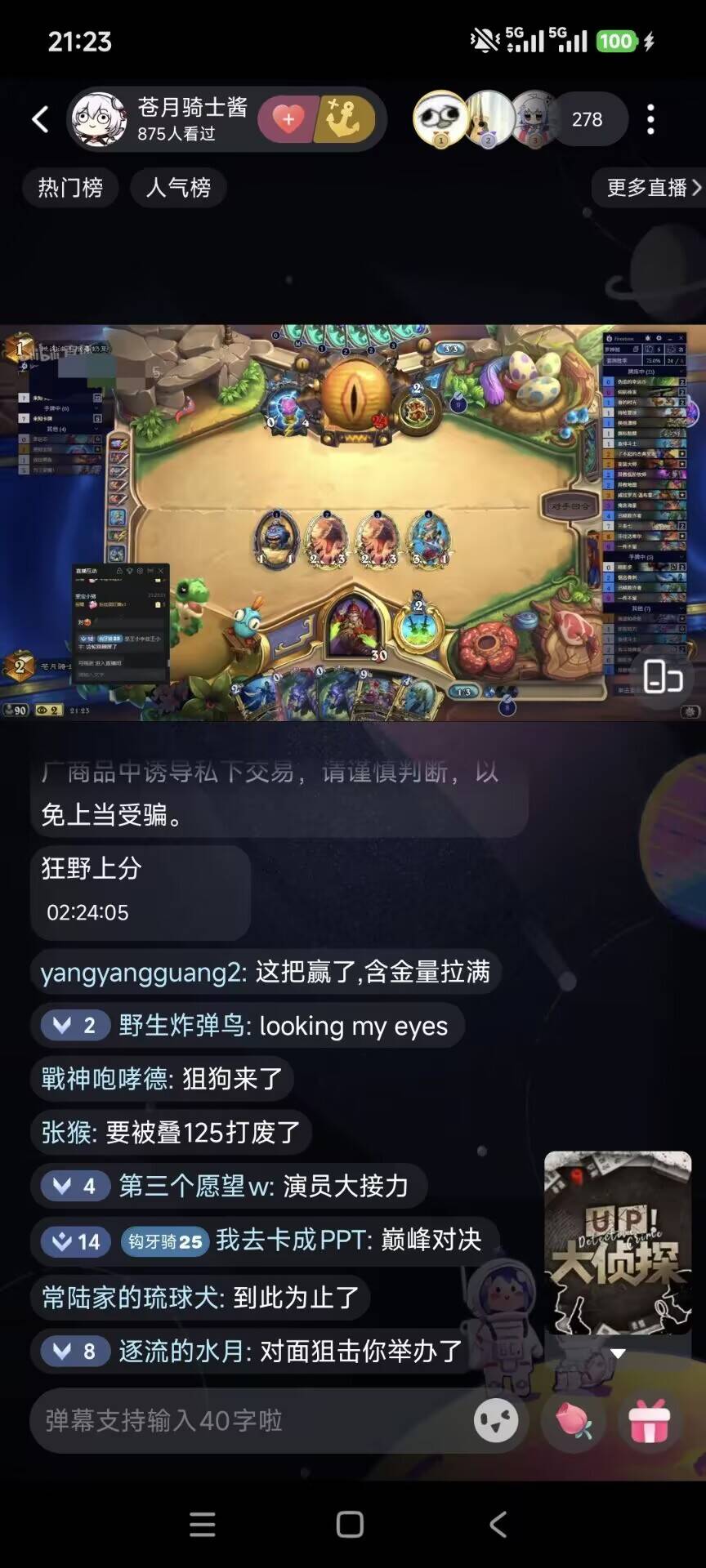 地沟油的另一个登顶玩家“地沟油丨抠春奶豆”,使用了“外吃刀外破甲骑士的任务术构筑”多次登顶,甚至有一次,拿这种大优构筑排到防战主播血妖还要央求血妖py,最后不负众望靠着破甲骑士击穿了血妖的护甲,令人汗颜。此外就在昨天,苍月骑士在第二冲登顶时候匹配到已经第一的“地沟油丨抠春奶豆”,发现对面拿出了从未在天梯上使用过的战士来狙击苍月骑士,结果狙击没打过反而亲手将苍月骑士送上登顶,令人忍俊不禁。笔者认为这种明面狙击的打法实在是破坏环境。