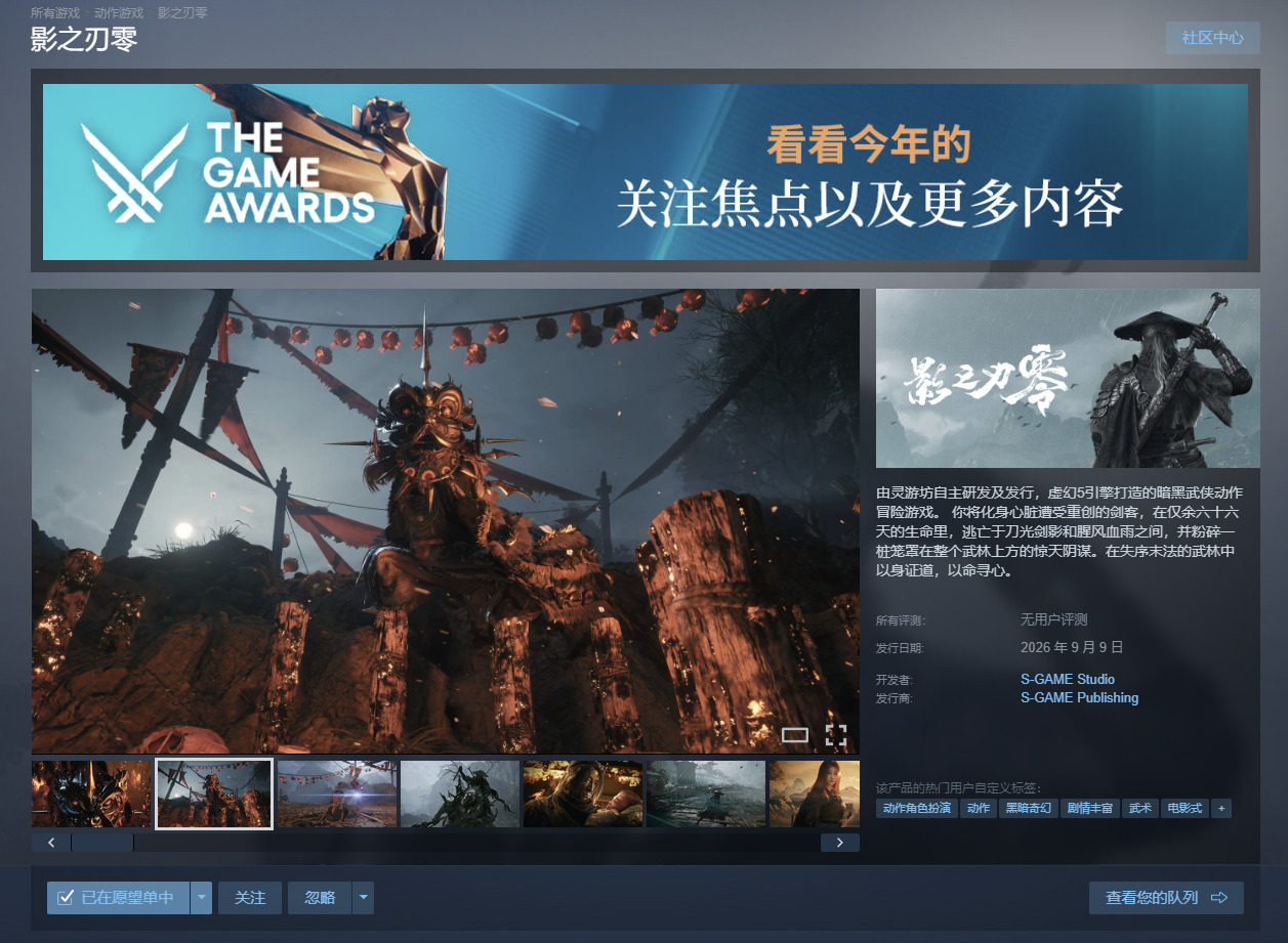 【愿望单抽奖】9月9日发售!《影之刃零》TGA定档PV公布!游戏商店页现已上线