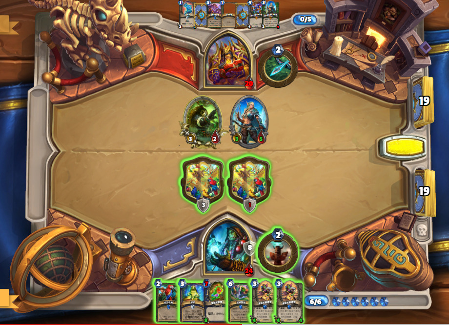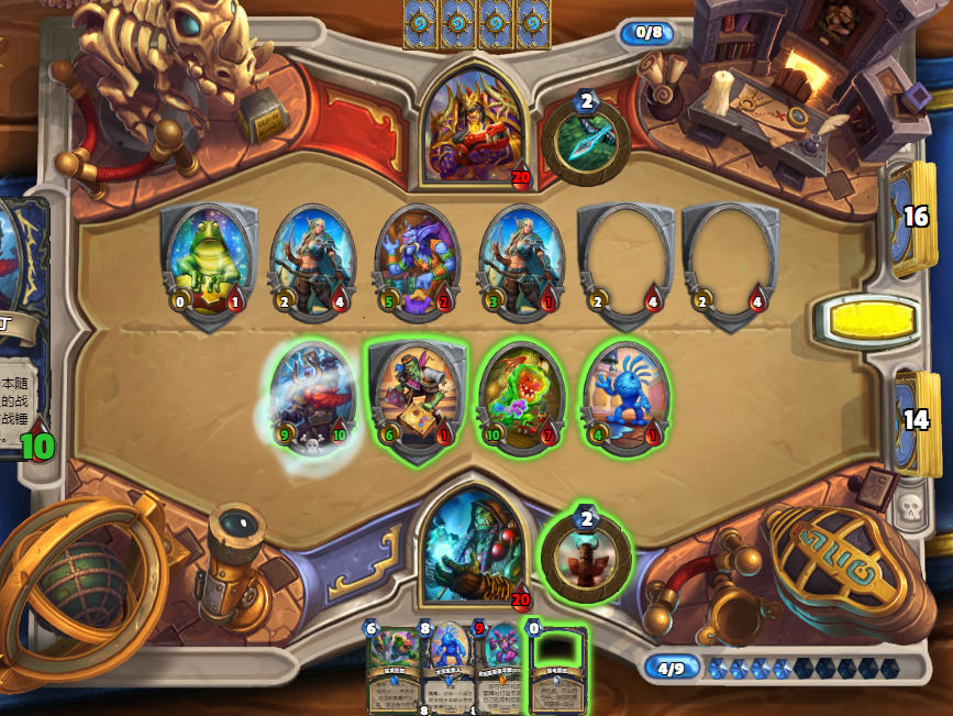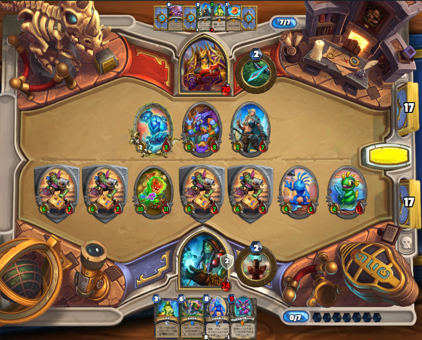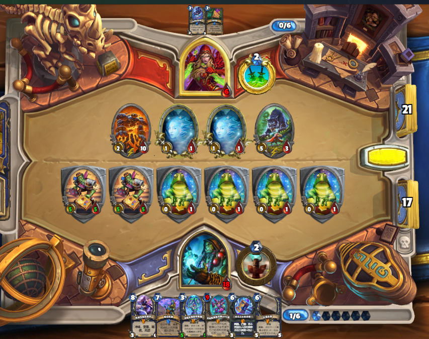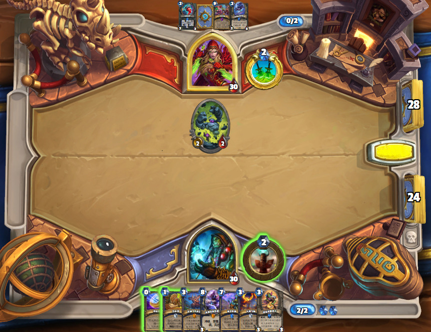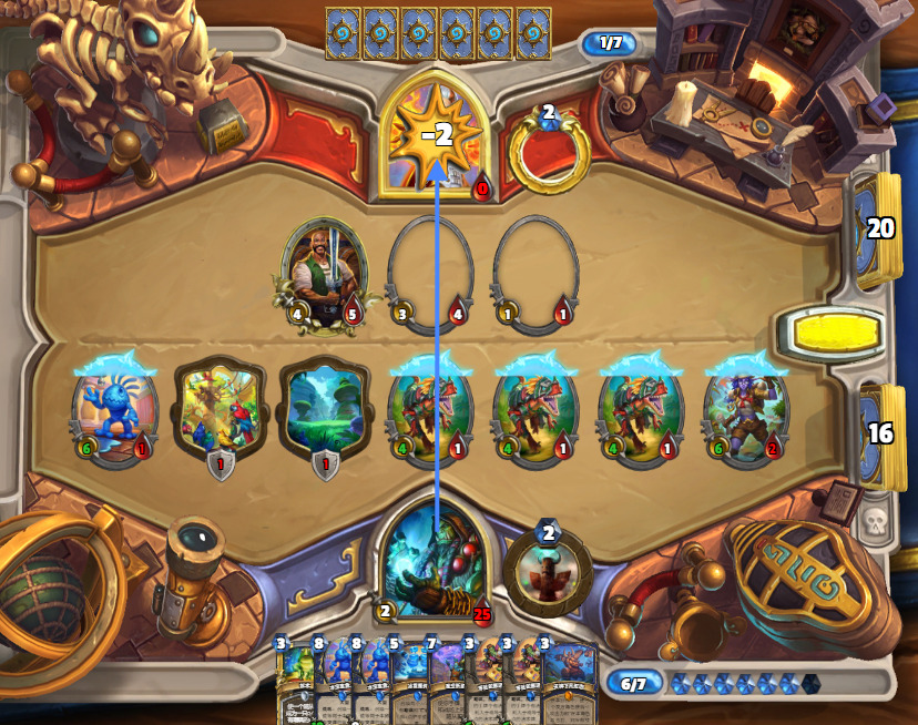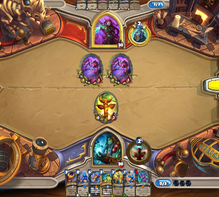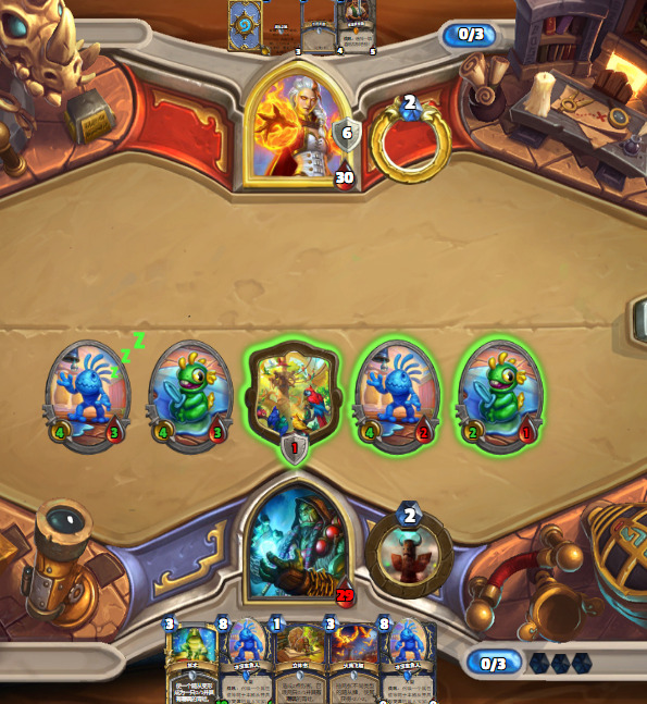 1.首先,起手不留水宝宝,从2费起,宁可空过也不会去摇一下图腾和随意打立体书,除非你是祈愿回合。这种劣质站场只会给战士荣耀减费,和增加乱斗留小怪的概率。