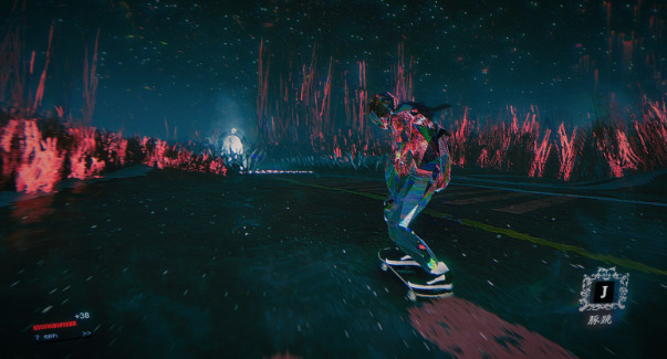 不过相比美术玩法就做得比较硬核,本周的玩法走的是传统滑板路线,需要我们做的不是高速躲避障碍物,而是反复秀出滑板技巧保持得分,然后用得分点数“击败”boss,好在本作的存档点更新的非常快速,失败的负反馈也不会很大,难度这一块被大大削减了。