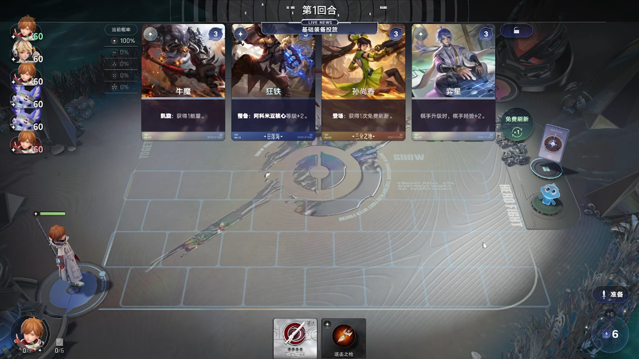 分析到这里我们直接买下牛魔和孙尚香,希望能赢下战斗涨经济,所以将手中开局赠送的装备