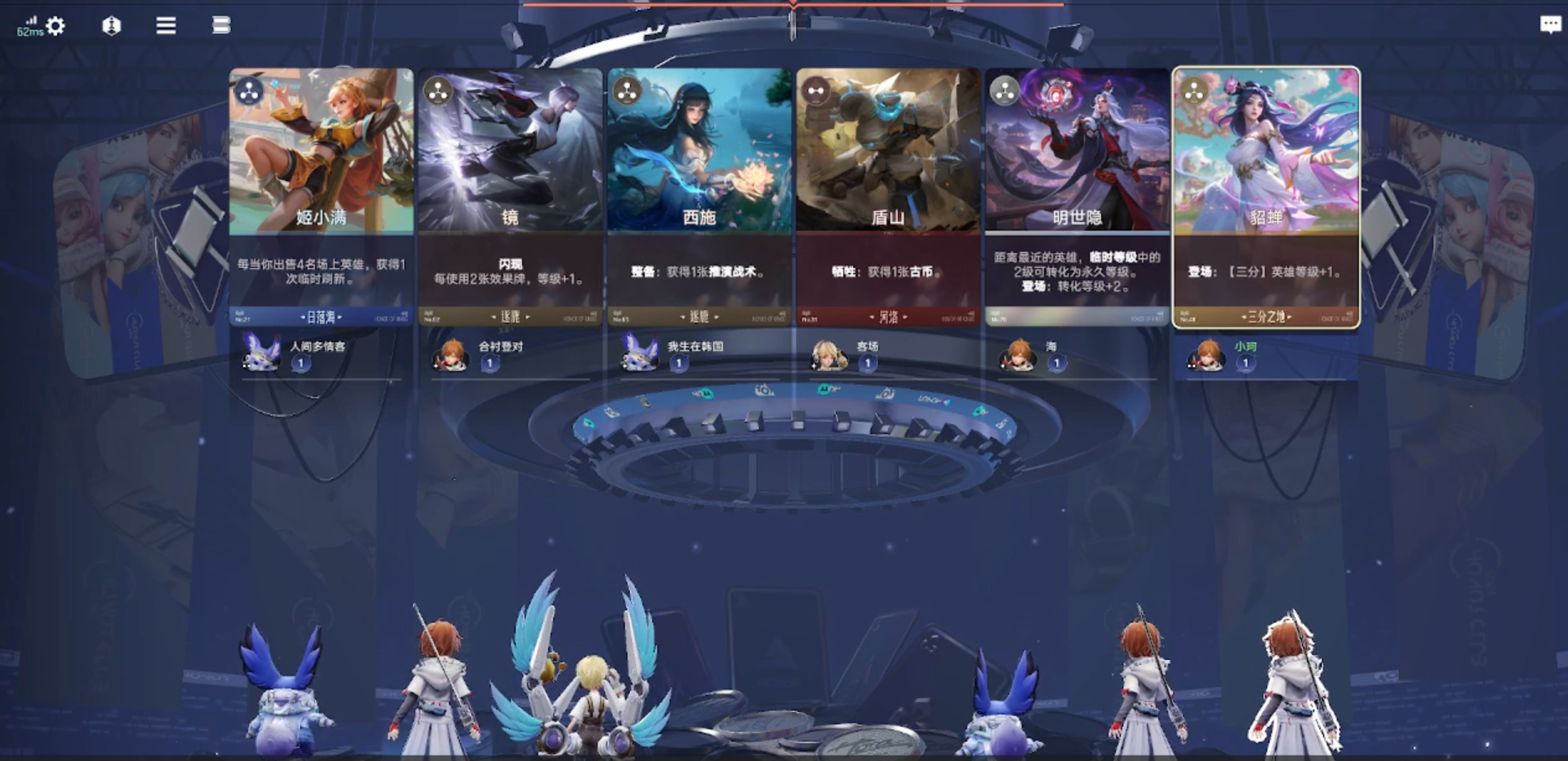第四回合开始前会进入拍卖阶段,在这个阶段,每名玩家都可以竞拍自己想要的卡牌,出价高者得,而我们选择了唯一一个三分角色貂蝉,虽然她不是我们最终阵容需要的,但是过度一下还是不错。