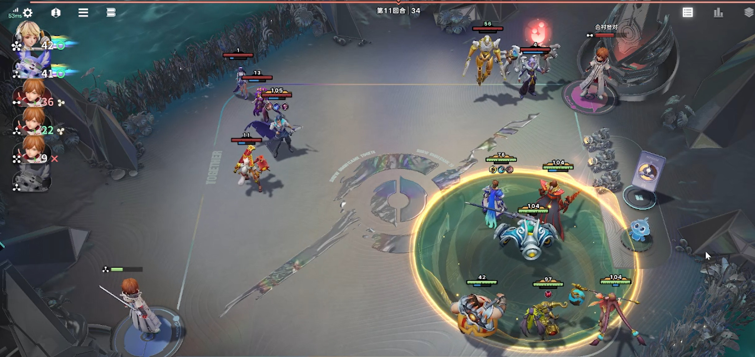 来到第11回合我们快速提升战力,让三名单位提到了一百级,基本就是正常水平,更早拿到觉醒猪八戒可以在9回合来到全员百级,后续就继续合成升级即可。