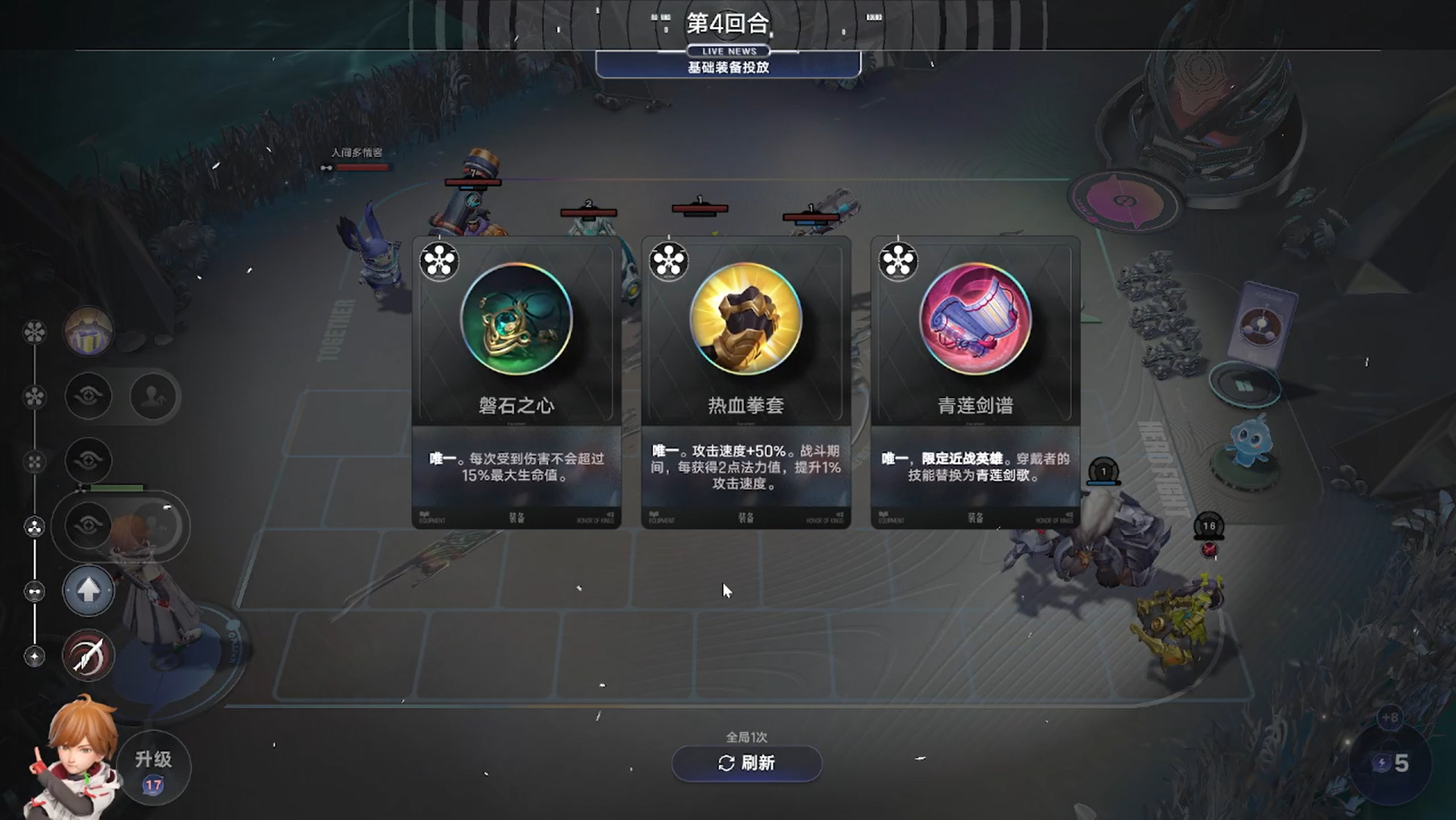 接着第四回合开始我们升至3本,获得了一次特殊装备三选一机会,这些装备不能通过基础装备得到,只有这种升本时特殊获取的方法。