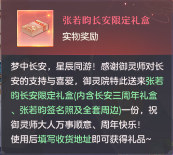 游戏内专属纪念:完成三周年版本中的活跃任务,即可免费获得「张若昀限定联动坐骑」和「张若昀限定联动称号框」。让你的角色带着这份独特的纪念,畅游长安。