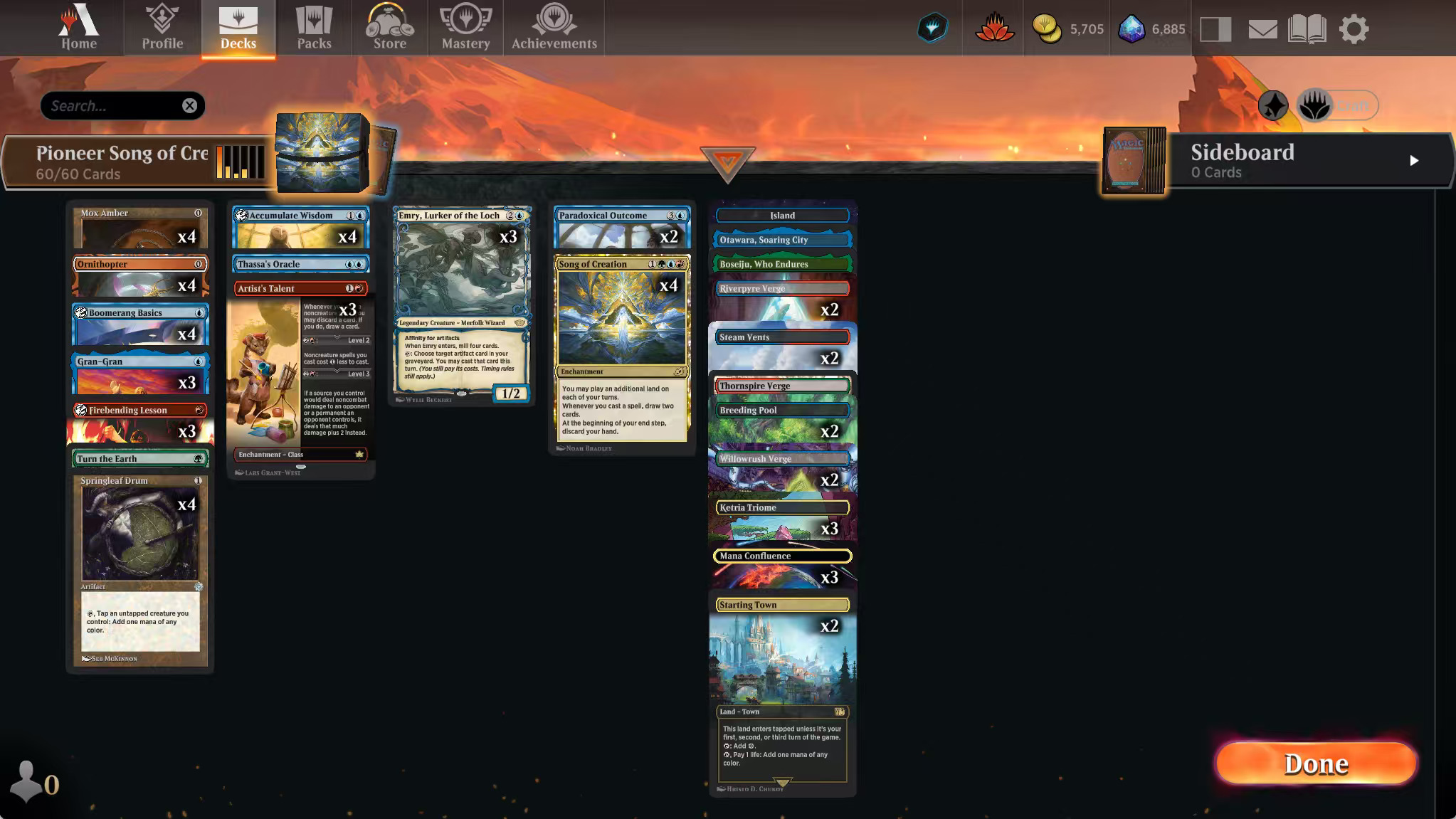 TLA加强的众多套牌中,创生颂曲是不起眼的一个。奶奶的减费光环,再加上众多超模课程的补强,使得创生颂曲有能力拒绝以前“蛋蛋套”的构筑。此外,奶奶作为1费传奇生物,能让琥珀玛珂产费效果更稳定,也增加了强度和稳定性。矛盾结果(PO)的加入也得益于奶奶的减费光环,使得3费PO变得可以接受(而且由于通常会回手一堆琥珀玛珂和春叶鼓,导致很多时候基本上是1-2费抓一把牌)。本文专注于BO1对局,如果你喜欢说书说赢的对局,又愿意花费野卡玩点不一样的套牌,可以尝试本套牌,并一起讨论。本文是抛砖引玉,构筑未必是最优,只是本人暂时实战下来调整的最好的构筑。