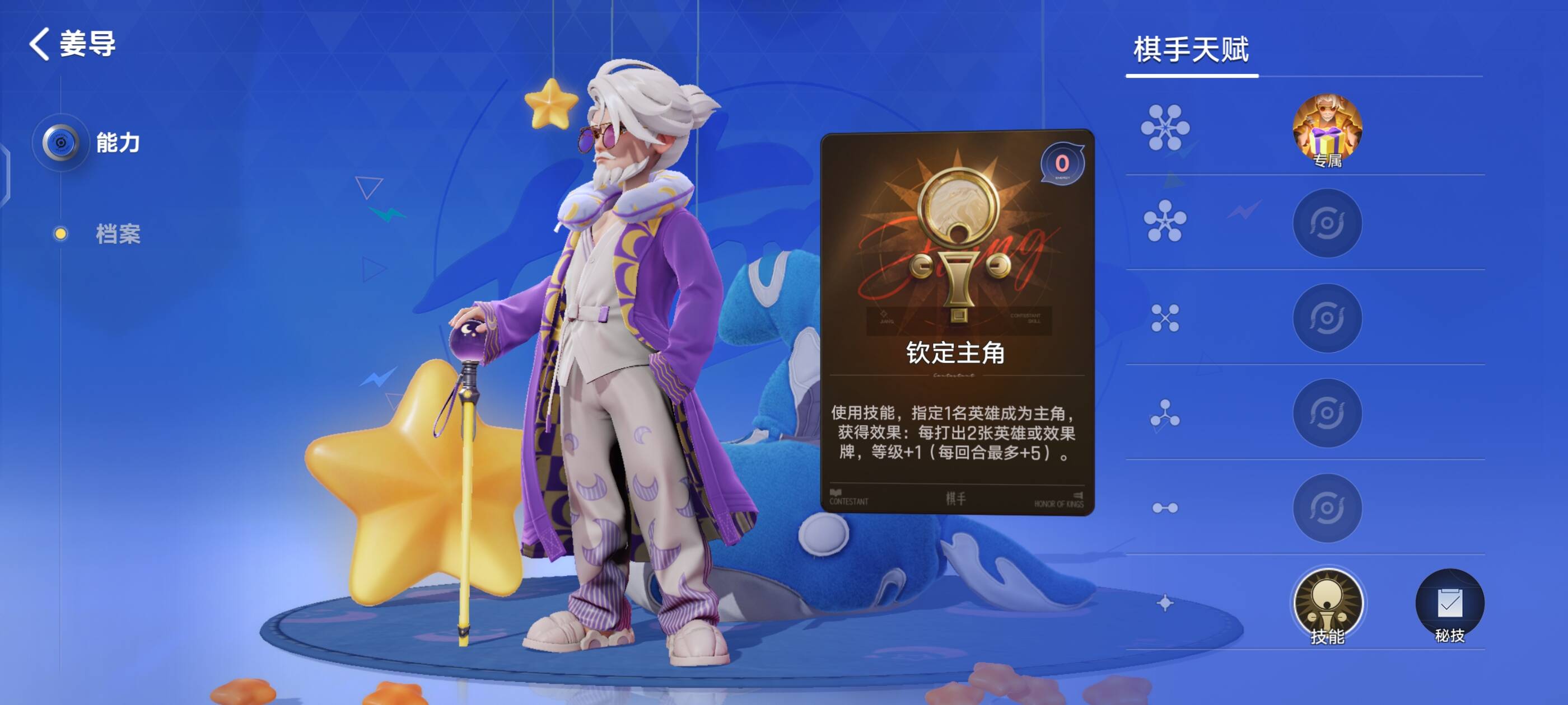 初始技能钦定主角:指定一名英雄成为主角,获得效果:每打出2张英雄或效果牌,等级+1(每回合最多+5)
