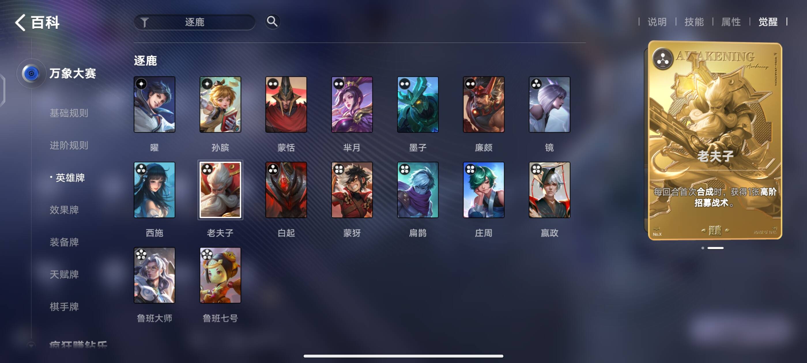 值得一提的是,中期的时候,如果带一张老夫子,通过触发获取他的招募战术,可以极大的增加你获取手牌的效率。前中期老夫子是性价比极高的卡牌。