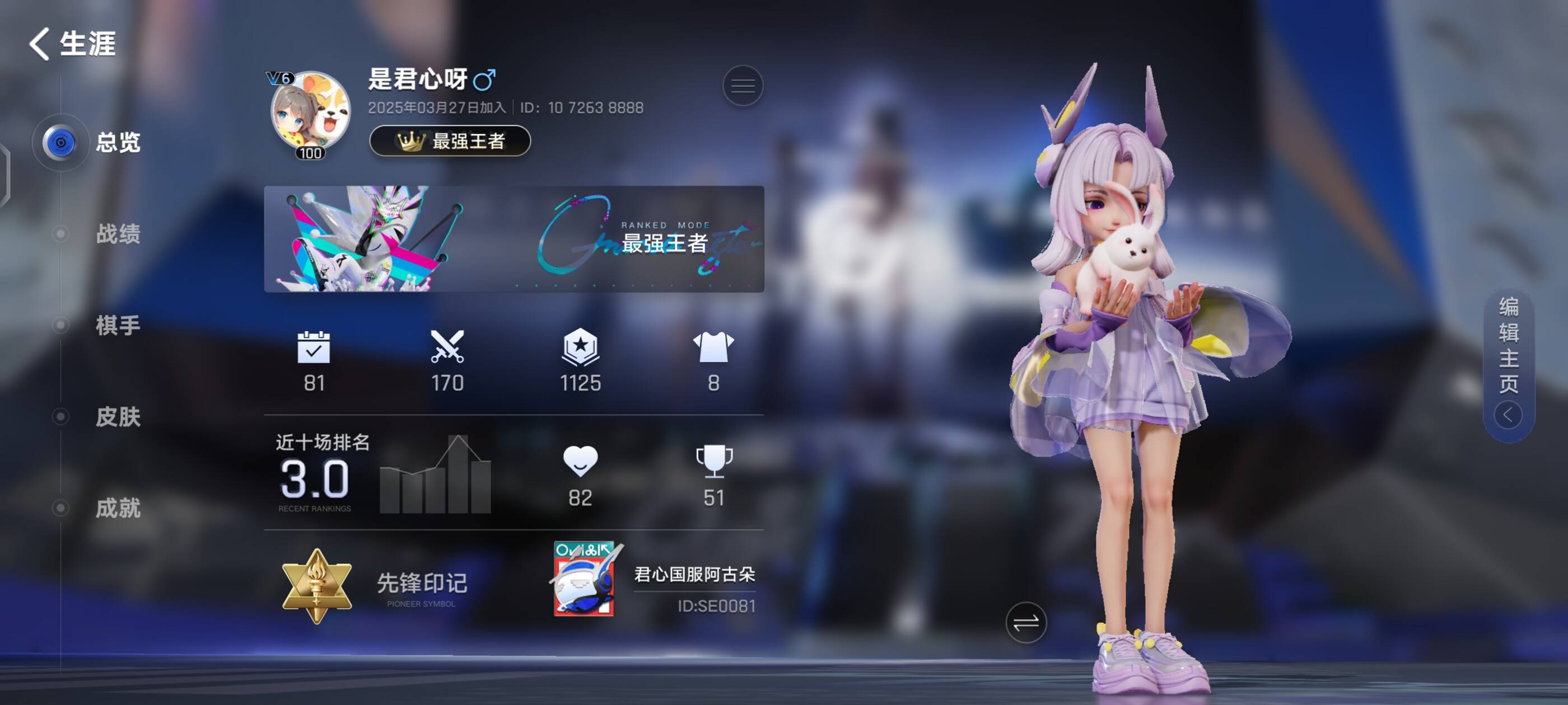 结语:君心目前最强王者1200分,全服排名五百左右,在场次仅有其余肝帝一半的情况下,应该算不错的成绩了,这套廉颇炸盾体系,也是目前上限最高的几套阵容之一。最后喜欢可以点赞关注,拜拜。