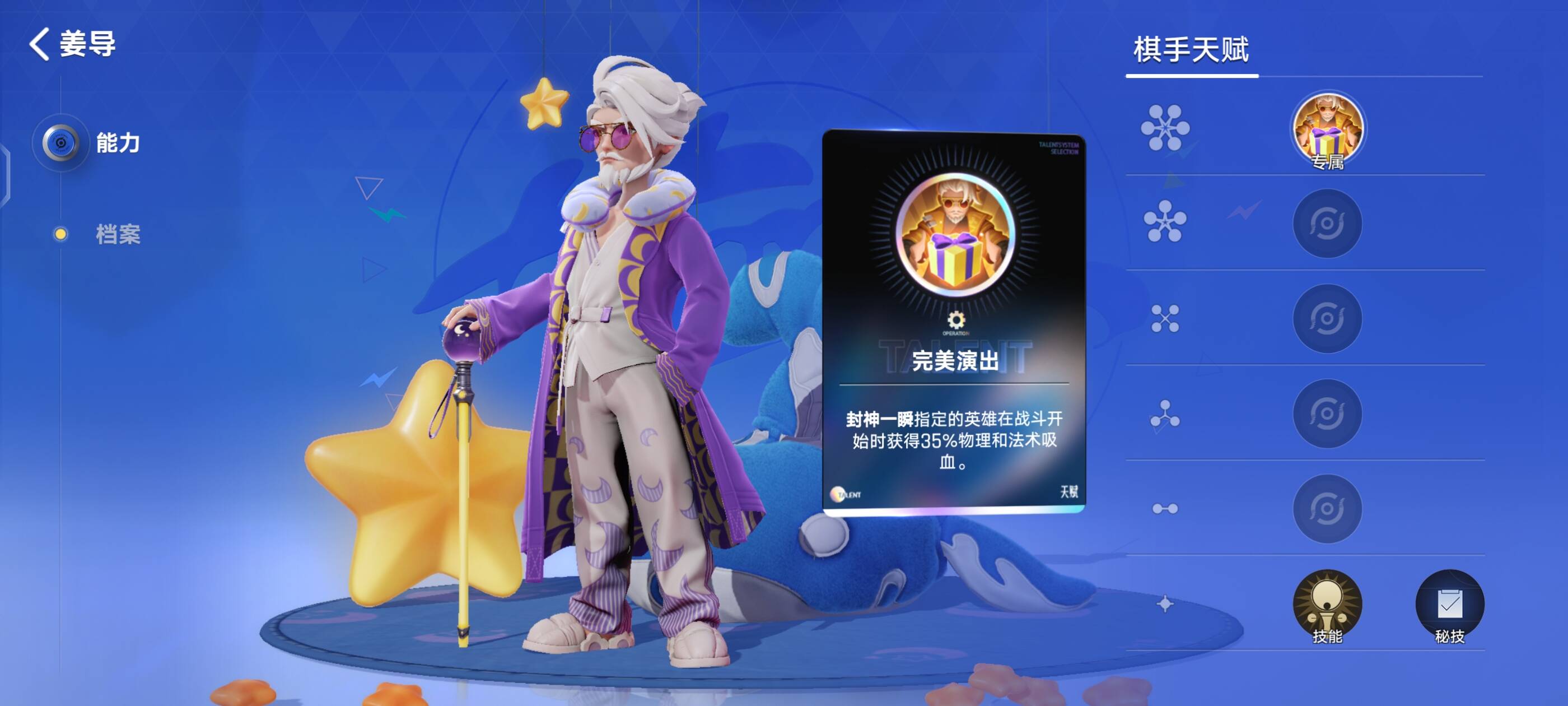 6级的专属大招——完美演出:主封神一瞬指定的英雄在战斗开始时获得35%物理和法术吸血。