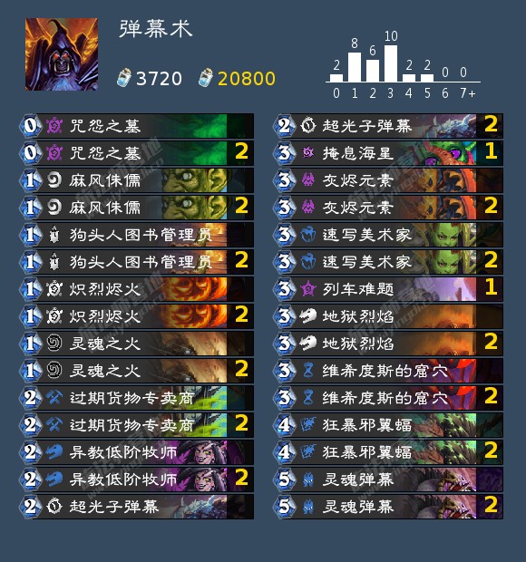 需要注意的是这套卡组不是弃牌术,大多数时候有事干不开咒怨,记得给速写和过期留弹幕,不要全扬了之后发现没弹幕刷了。