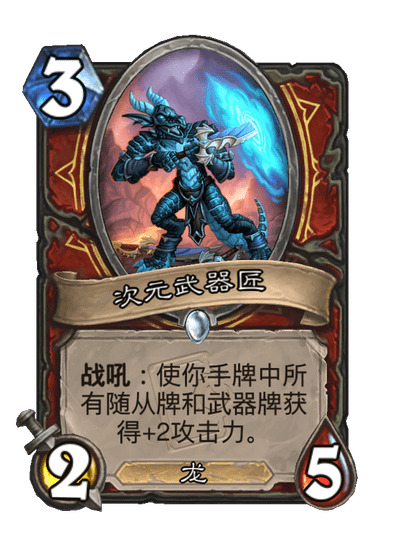 :使你手牌中的所有随从牌和武器牌获得+2攻击力。