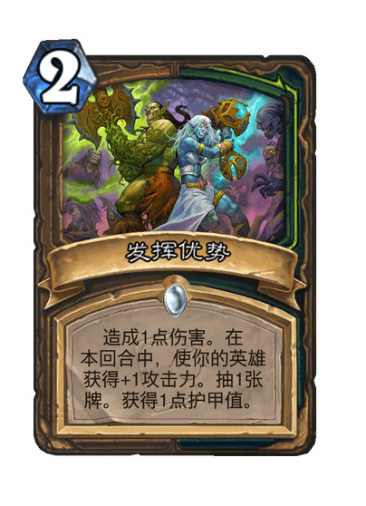 造成1点伤害。在本回合中,使你的英雄获得+1攻击力。抽1张牌。获得1点护甲值。