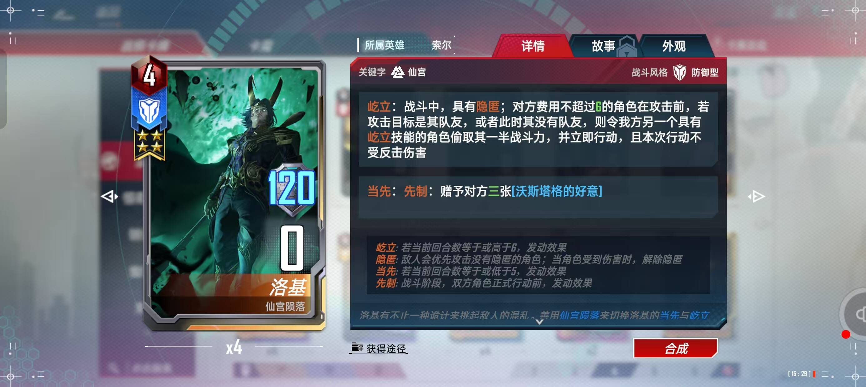 (2)有索尔根据星级:一星升四本,找洛基顺便升索尔星级;二星及以上,看有没有钱和血量升五。或者观察场上玩揭示的多不多,准备是否要尽快上五寻找艾丽卡。