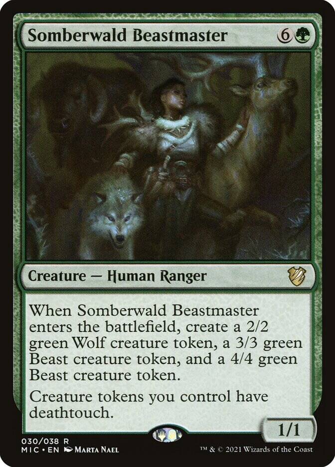 咋看之下,power+toughness<=5,对卡组生物限制挺大的,基本上show不出来一般的大哥。但是仔细想想又不完全是这么回事,诸如谗言密探,蜂后,悟道大师娜尔施,林间嚎吼卢玛拉都能被show出来,所以仔细盘点一下先驱/摩登/史迹牌池内能被show出来的,有价值的生物。