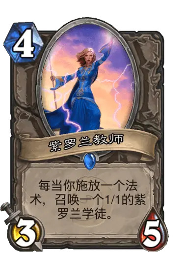 紫罗兰教师,当你释放一个法术,召唤一个1/1的紫罗兰学徒。没看上个帖的炉友可能会问了,那这有什么用呢,那就让我来展示全图。