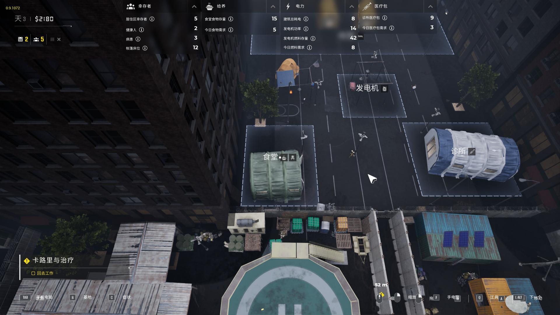 游戏初期的资源获取渠道十分有限,主要依靠后方不定期的物资空投和检疫正确给予的奖励。我在开荒期最艰难的阶段,曾因为电力不足导致无法启动所有基地设备,更雪上加霜的是,当时营地的食物储备严重不足,每天都有幸存者因为饥饿出现生病的情况。为了缓解危机,我不得不调整电力资源分配策略:暂停非必要的设施供电,优先保障医疗区和检测站的电力供应,当这种情况继续持续下去的时候,将面临重大的抉择,必须减少基地人员,才能让剩下的人更好的活下去,虽然是游戏,但是看着那些幸存者乞求活下去的眼神,真的很难下定决心痛下杀手。