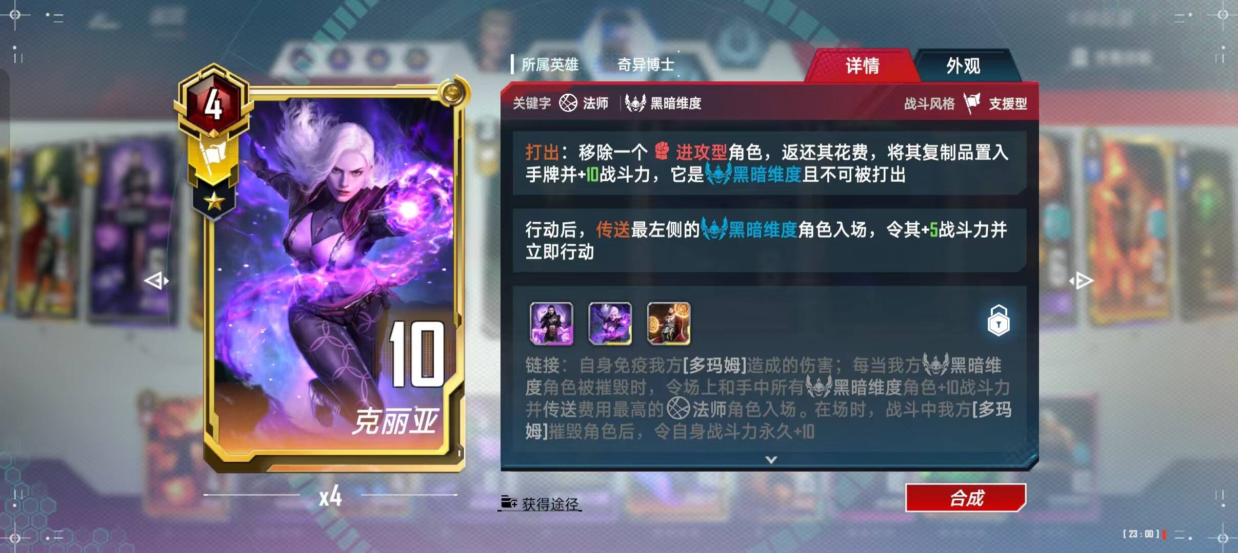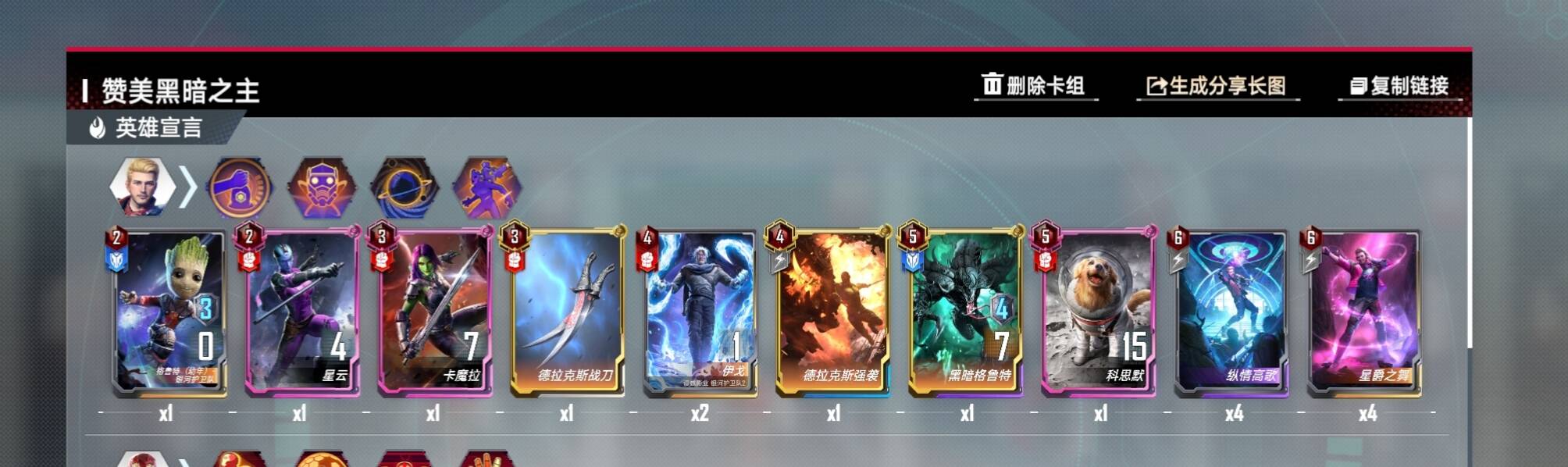 这是一套以多玛姆 + 黑暗维度为核心的中期爆发流卡组,通过 “卡牌回手 + 多玛姆多次行动吃掉手牌” 叠加身材,最终爆炸一波清场获胜(或者打不过就封印对手 给对手点难忘的体验)同时使用了钢铁侠的经济运营的跳费找组件,我感觉是一套兼具强度与操作乐趣的卡组