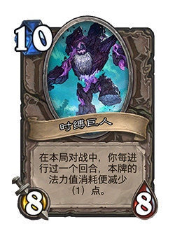 - 新:[10费] 在本局对战中,你每进行过一个回合,本牌的法力值消耗便减少(1)点。