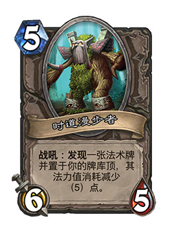 - 旧:[6/3] 战吼:发现一张法术牌。使其法力值消耗减少(5)点,然后置入牌库顶。