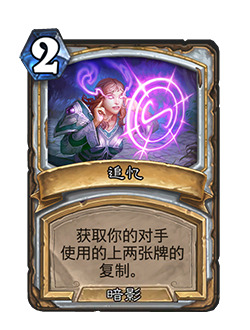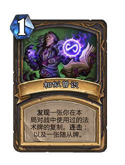 - 新:[1费] 发现一张你在本局对战中使用过的法术牌的复制。连击:以及一张随从牌。
