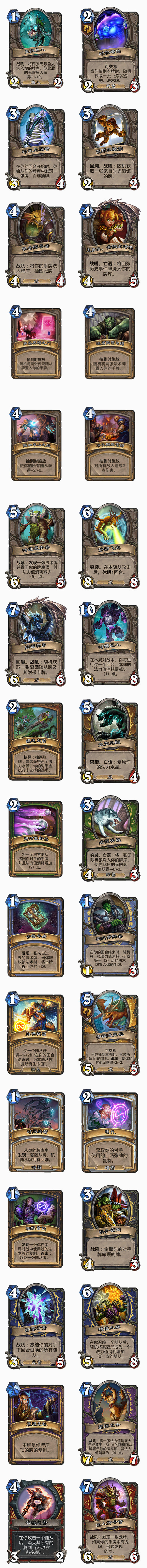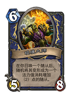 - 新:战吼:将一张法力值消耗大于或等于(5)点的随机随从牌置于你的牌库顶,其法力值消耗为(0)点。