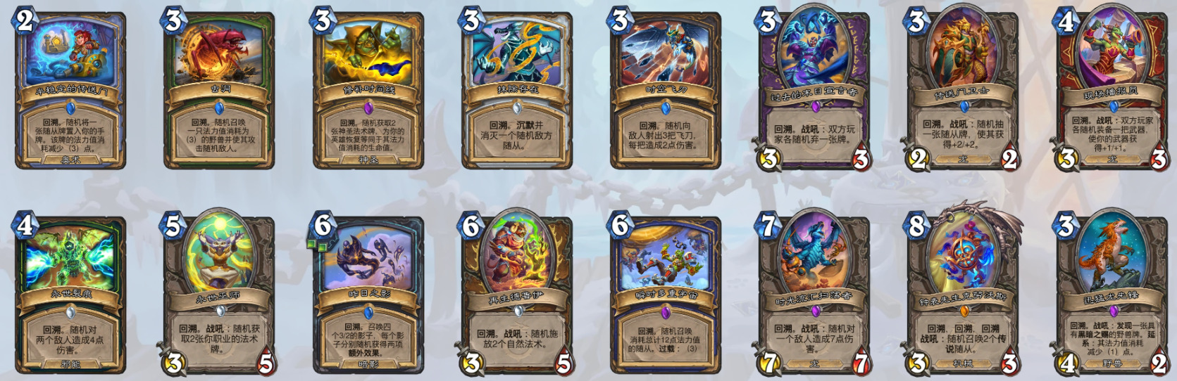 注:米罗克只会发现职业回溯牌而不会发现中立牌。虽然荒野探险家新增回溯,但其本身为时光酒馆卡牌不会衍生出来。