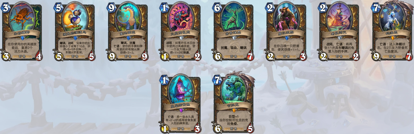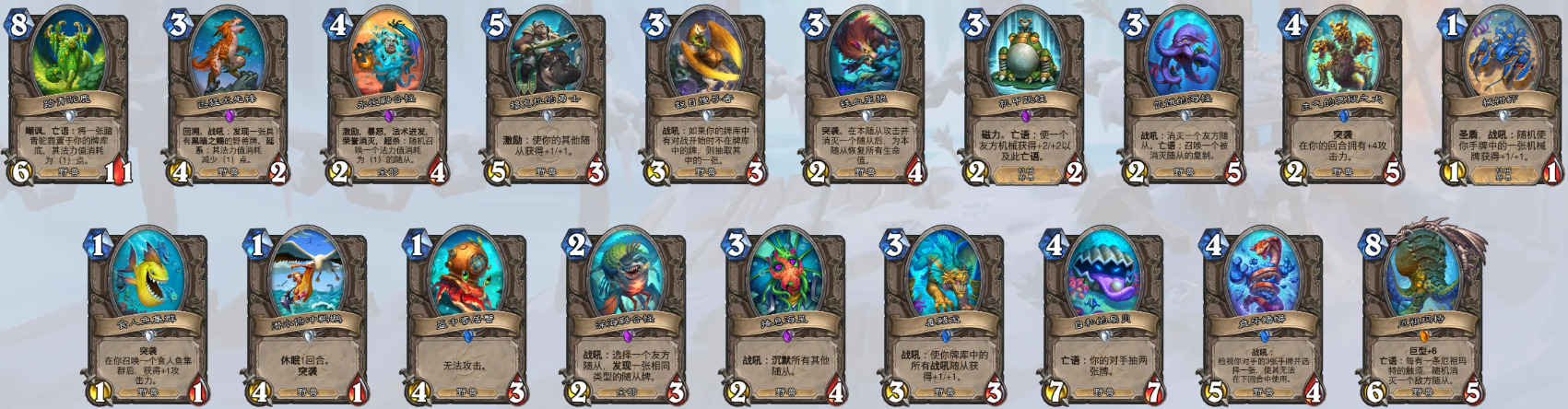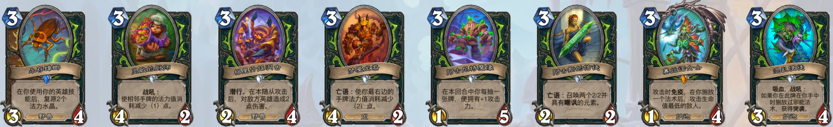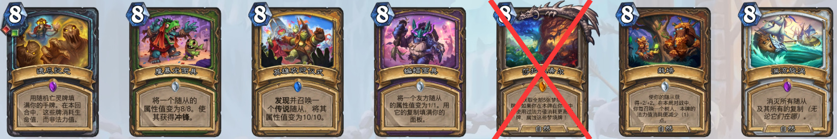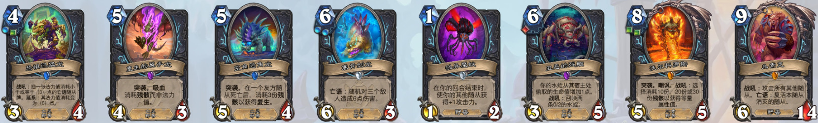 3、8费随从(昼夜节律术师)(奇闻、泰坦和巨型均无法衍生到战场上,套牌里没有克苏恩相关卡牌也无法衍生克苏恩)