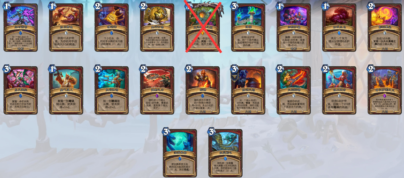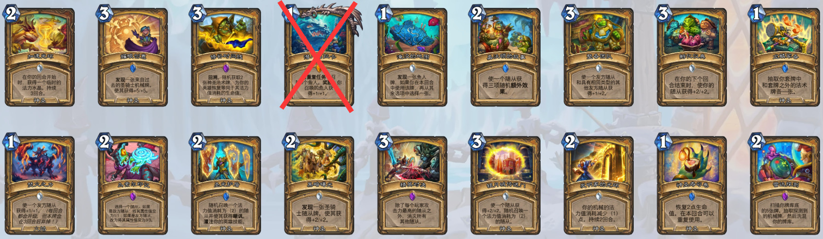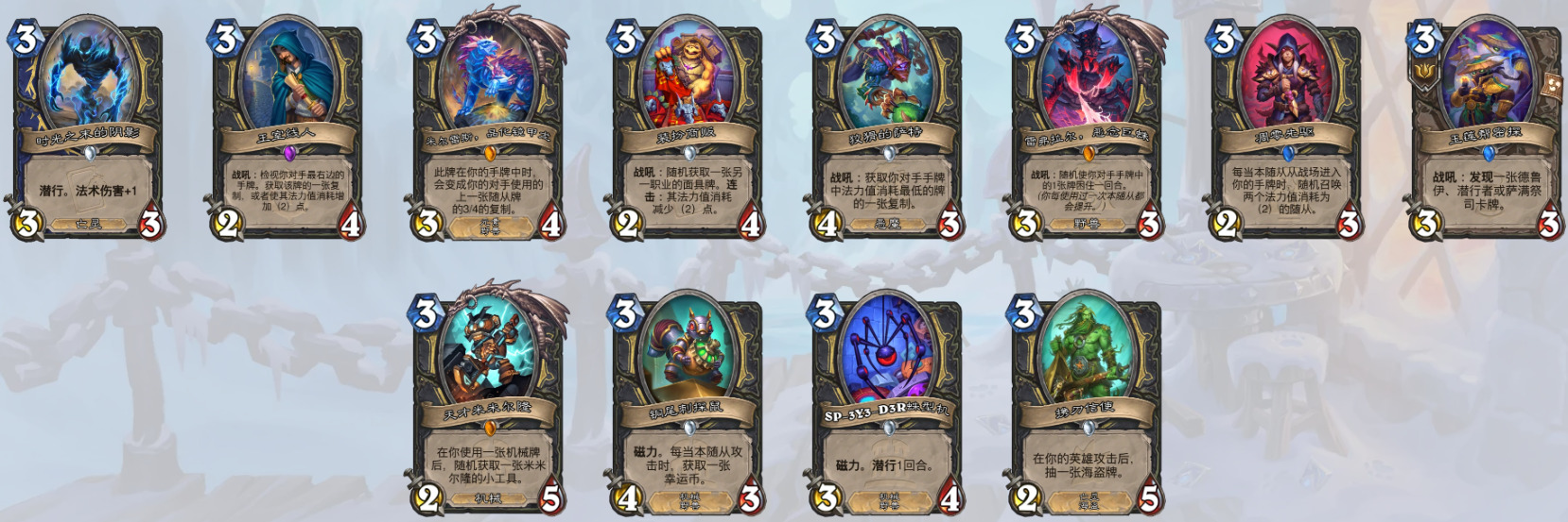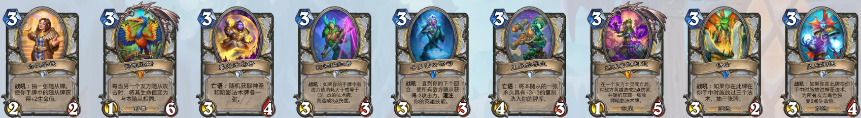 3、8费随从(昼夜节律术师)(奇闻、泰坦和巨型均无法衍生到战场上,套牌里没有克苏恩相关卡牌也无法衍生克苏恩)