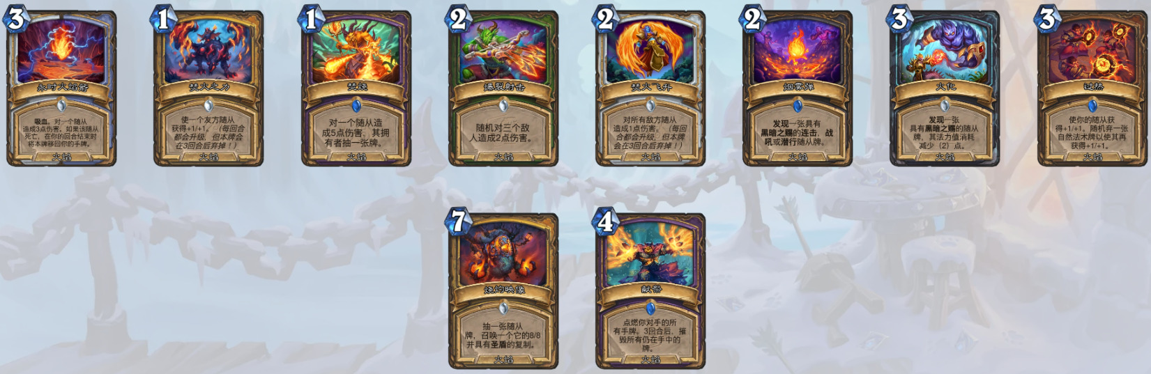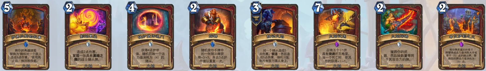 战士——时光领主埃博克、伟岸的德拉克雷斯、远祖之斧、龟甲旋风、受难的毁灭者、苦涩结局、鼓动火焰、清理污染、火焰试炼、海沟追猎者