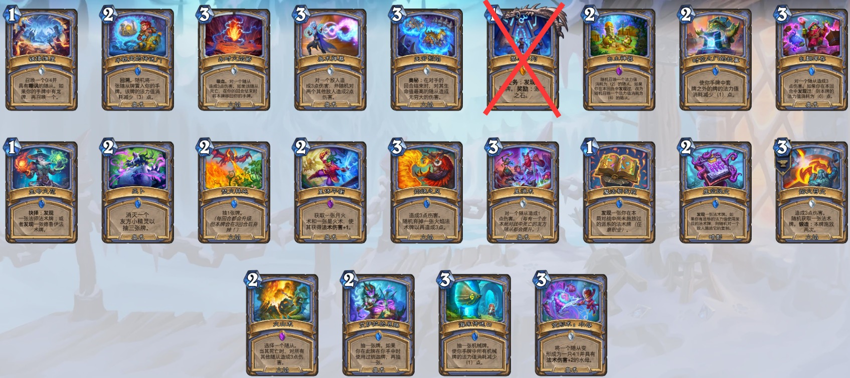 法师——艾森娜、盖亚,巨力机甲、时空跃迁者克罗米、奥术弹幕、绵羊面具、无穷烈焰、苦涩结局、求知造物、腐化残渣、火山术