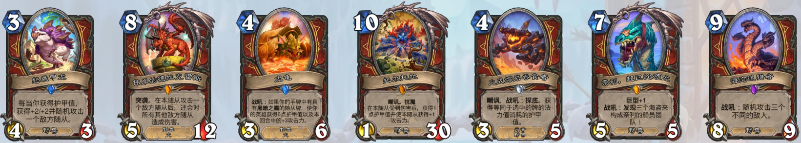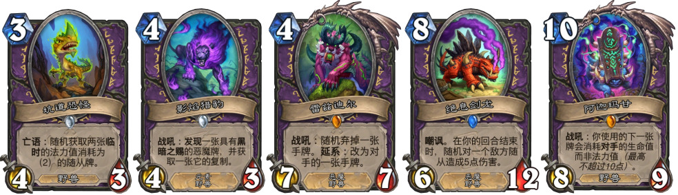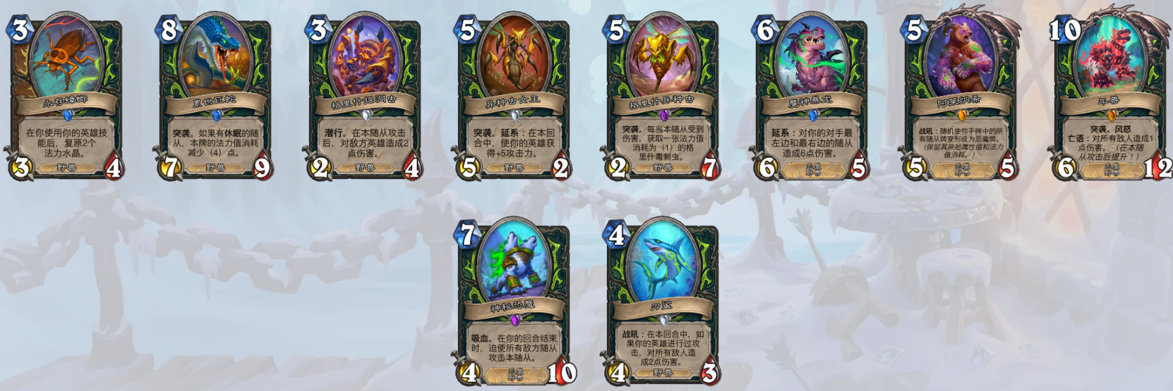 中立——永恒雏龙、黏团焦油、鳞皮科多兽、饥饿的魔暴龙、孢子尖牙怪、碎裂扫荡者、潜水泥鳞鱼人