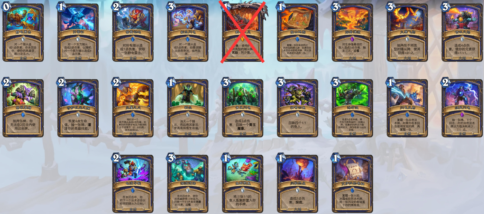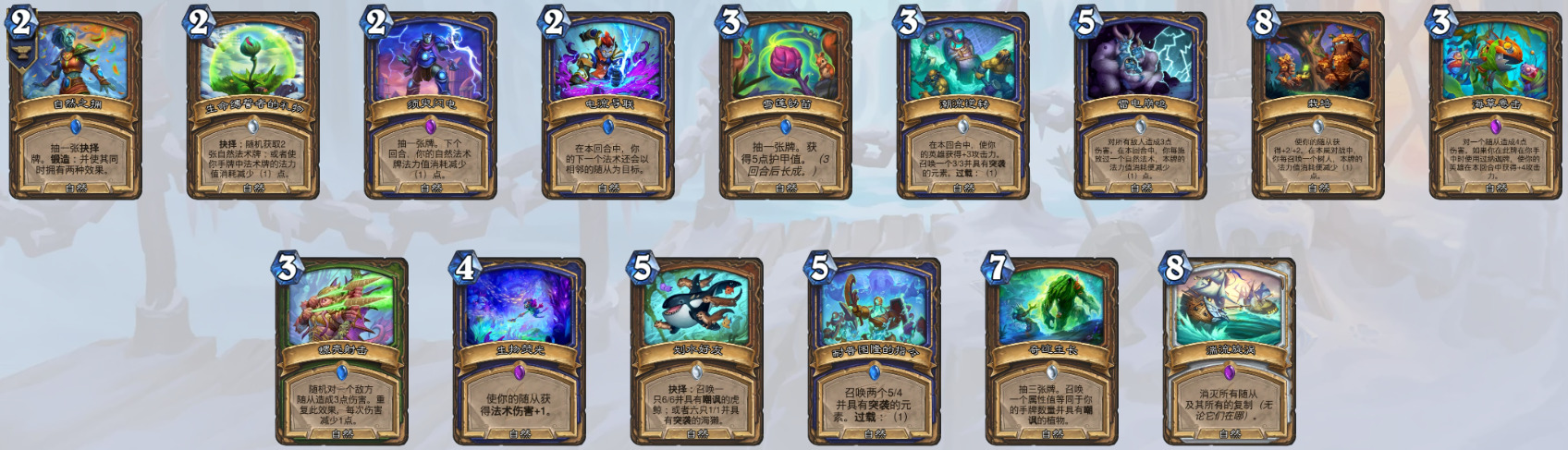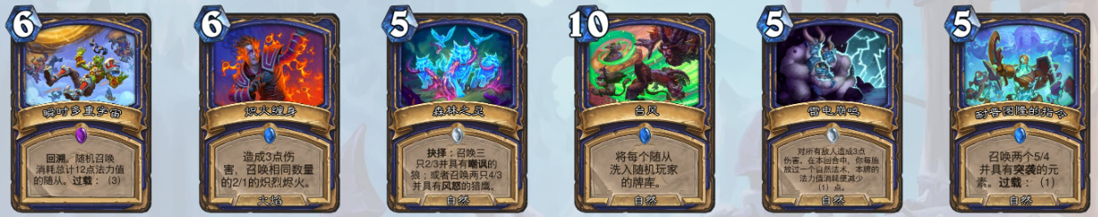 萨满——高山之王穆拉丁(及其附属卡天神下凡形态)、雷霆动地、熔岩涌流、毁灭化身、台风、力敌万世、雷电崩鸣、鱼群聚集、耐普图隆的指令