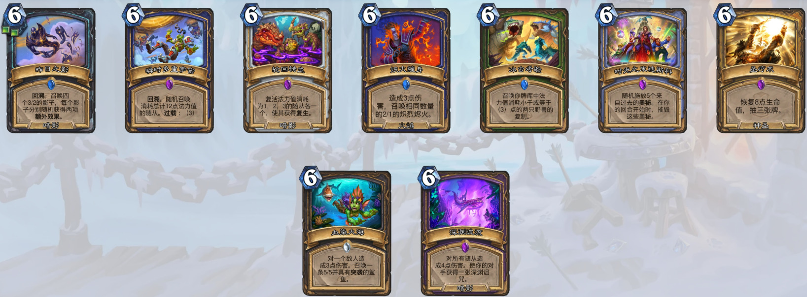 牧师——圣者麦迪文、时光大盗姆诺兹多、焚火飞升、月亮井、力敌万世、暗言术:禁、平心静气、深海低语、湍流旋涡