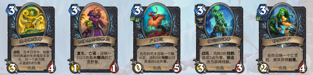 死骑——乌索克、末日使者之杖、赞达拉的惨象(墓地尊主塔兰吉附属卡)、焦油狂潮、寒骨剑龙、墓地叛徒