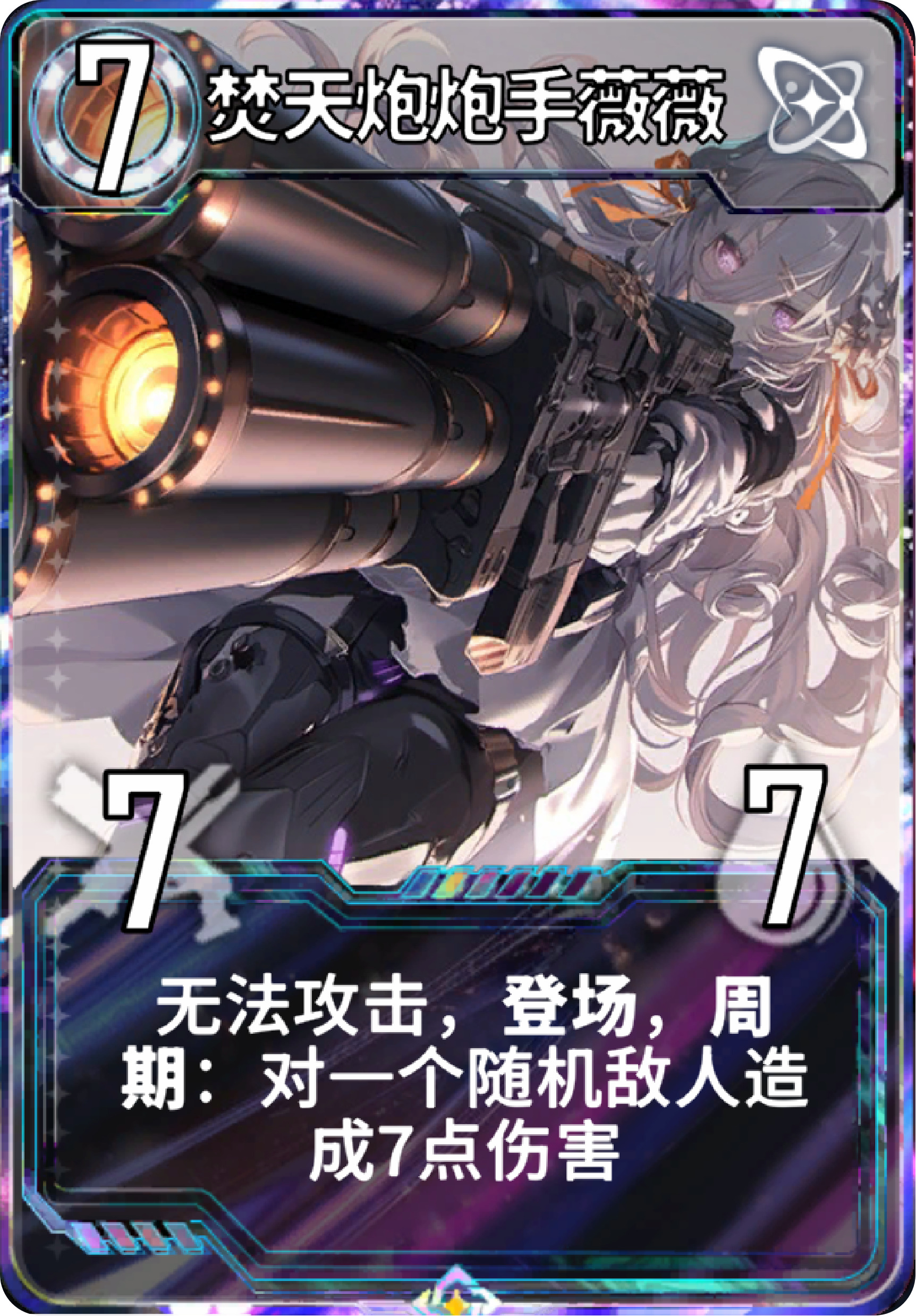 智能回环常用终端,登场打7点伤害,每隔15秒还能再打7点伤害。同时自身获得魔免效果后,对手只能依赖随从牌才能处理。