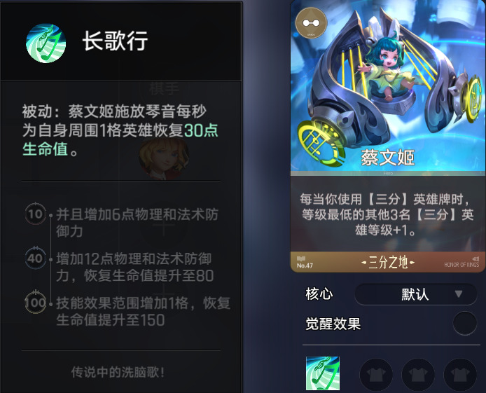 有了后排输出,前期的续航就交给蔡文姬。蔡文姬是三分阵营前期提升等级的核心,拿到她之后,其他英雄都要围绕她摆放站位,开战后全队都能享受到蔡文姬被动的回血效果,极大提升阵容的容错率,让玩家在前期换血中占据绝对优势。