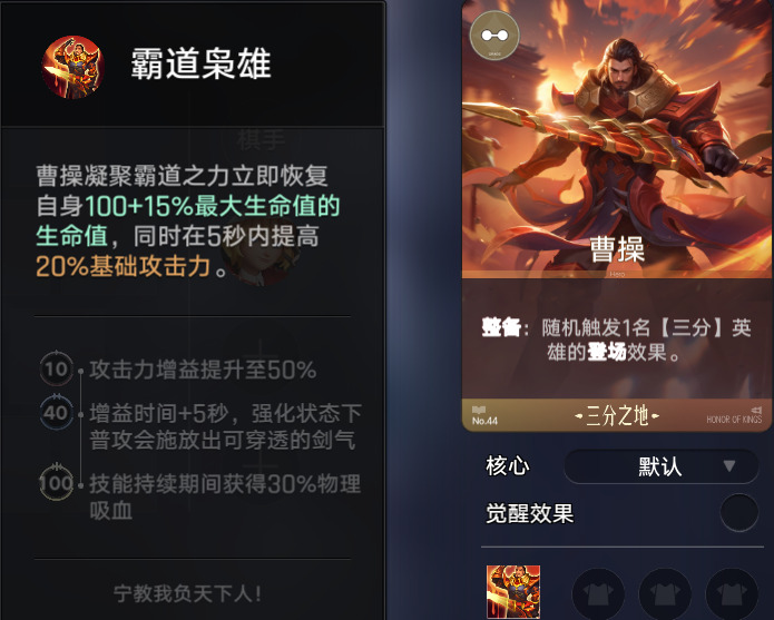 而曹操则是前期最靠谱的前排肉盾,他的整备效果还能触发三分英雄的登场效果,前期多次触发孙尚香的买年费刷新词条,大幅降低商店刷新的经济压力,让玩家的运营节奏更加丝滑。
