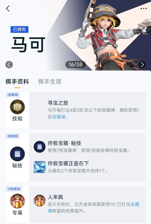 这套玩法的核心棋手就是马可,虽然版本更新削弱了马可满级时的专属效果,但这套玩法根本不需要依赖马可的满级能力,而是利用他前期的机制,不断打出低阶牌来完成任务,获得宝藏奖励,反复刷宝藏任务后还能解锁强力秘技,进一步强化前期的压制力。