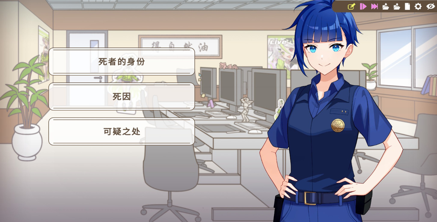 刚开始遇到的这起破朔迷离的案件,因为所以的箭头都指向了VTuber的老板离奇死亡,没有人有作案动机,而往往越是没有问题的事件越有问题,于是就连夜召集了六名员工进行逐一审讯,审讯的点围绕着已知的可疑突破口(与被害者的关系,安眠药和水果刀以及不在场证明)进行抽丝剥茧,当被审讯的时候提供信息时会被记录下来,右上角有个类似笔记本的东西记录着证据还有侦查记录等,方便玩家复盘