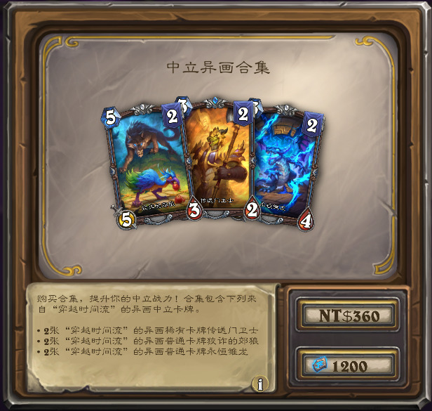 含构筑模式异画传送门卫士,异画狡诈的郊狼,和异画永恒雏龙,售价780奥术宝珠(国服)/1200符文石(外服)。