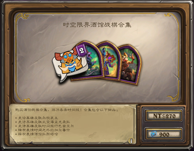 含战棋模式3款时间流主题的英雄皮肤,和2款时间流主题的表情,售价54符文石(国服)/900符文石(外服)。