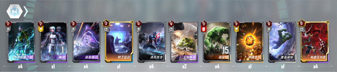 3费:缩小拉满,找机会四败。特工召唤遭遇,主要是为了防影域艾丽卡,这东西可谓是普攻卡组的一生之敌,有遭遇后,对方摧毁我方单位就能直接召唤特工让对面没法过来。如果对手带的影域丧气拆遭遇,可以买两九头蛇遭遇放着防一波。