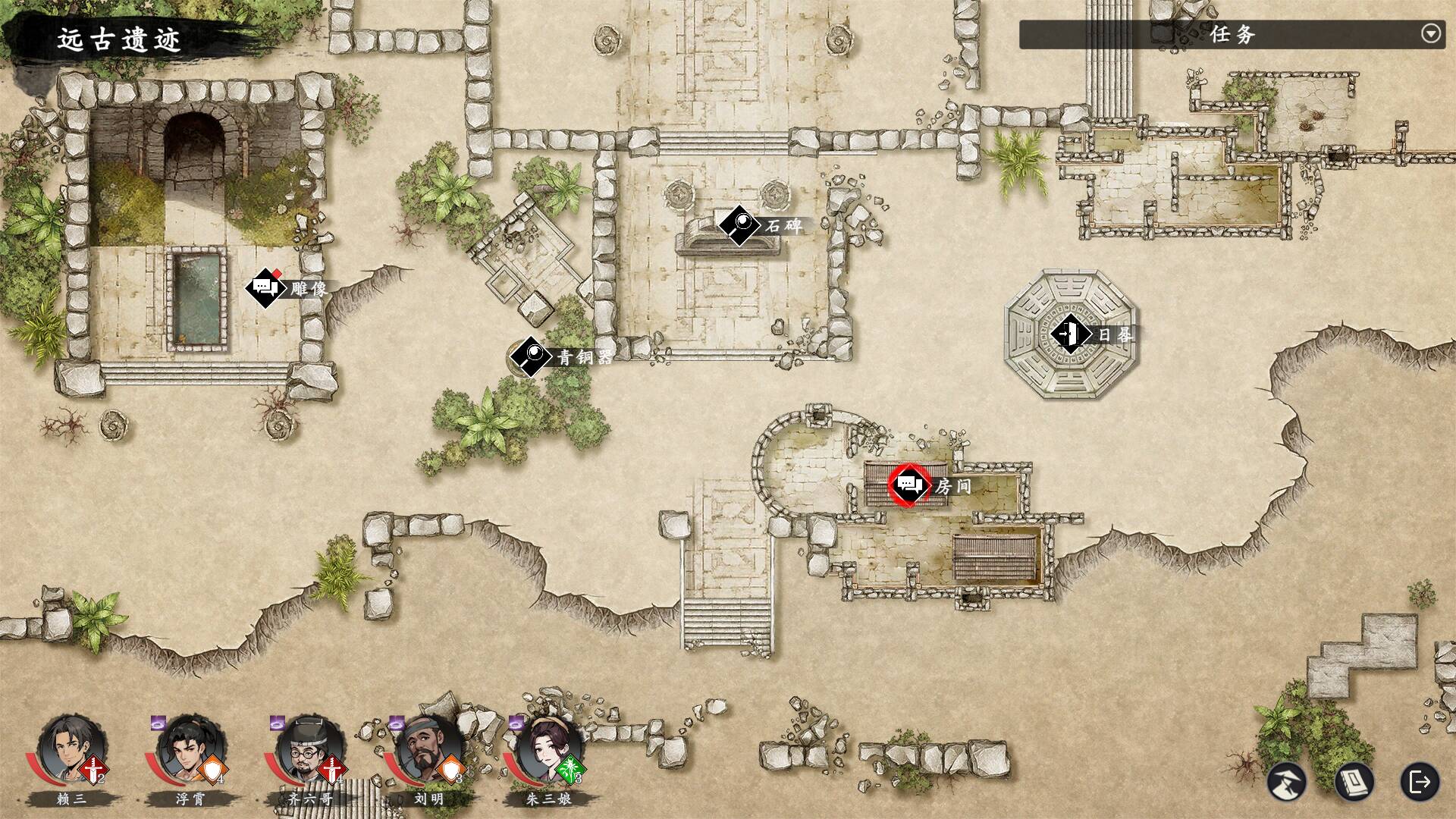 游戏中,副本会以“[探索]”标签标注在地图上,进入需要消耗1点行动力,尚未完成的副本可以多次进入。这些副本风格各异,既有机关密布的远古遗迹,需要你破解谜题才能推进;也有人迹罕至的静谧山谷,藏着稀有资源和奇遇;还有贼人盘踞的凶险山寨,需要你步步为营清剿敌人。